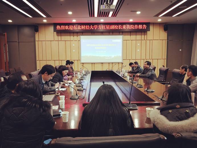 罗惠玉书记首先致欢迎辞,对方校长百忙之中来我院作报告表示欢迎与感谢,并介绍了学院的发展历程、专业布局、学科建设、教学资源、师生结构、培养特色等方面。方校长随后做了主题报告,一是介绍了东北财大OK138太阳集团的学科、专业、课程、师资建设,二是阐述了东北财大的师资分类管理、校院分级管理、科研与教学的关系、专业方向设置与课程体系,三是提出了一流学科、一流专业、一流课程建设的相关建议。