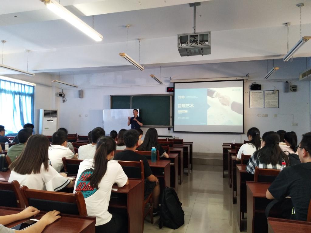 张辅辙先生首先向在场的实验班学生提出了“如何一同创办一家小面公司”的问题,引发听众对管理艺术的思考,进而阐述了管理艺术实际上就是对管理理论的极致运用这一本质。