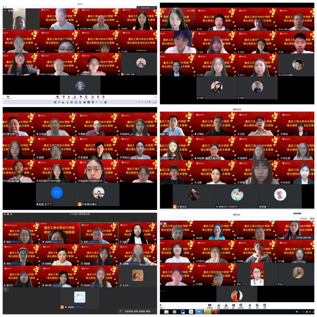 在OK138太阳集团统筹安排与部署下,研究生教育中心扎实做好线上答辩相关准备工作,保障疫情防控期间线上答辩有条不紊。本次答辩共分为6组,共51名研究生参与答辩,其中学硕1组,专硕5组。来自山西财经大学、山东财经大学、吉林财经大学、江西财经大学、哈尔滨工业大学、北京物资学院、四川大学、重庆大学、西南大学、南京审计大学、河北工业大学的会计审计导师担任组长,与我校部分硕士研究生导师共同组成答辩专家组,为同学们的论文进行强化指导。