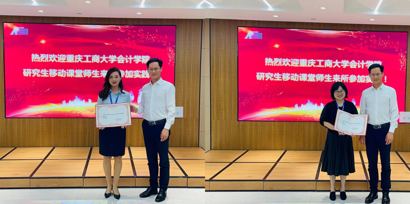天健会计师事务所重庆分所人力资源部高级经理许静用一支精心准备的宣传片,介绍了事务所的基本情况、服务范围和发展历程,随后,为了使同学们能更加直观地感受事务所的工作环境和工作氛围,她带领同学们参观了事务所的办公区域。审计业务专业技术部经理、全国会计领军人才魏倩女士主持开展了“玩转资产盘点”实践活动,同学们通过亲身参与盘点来获取课本以外的实践经验。最后,双方举行了专家聘任仪式,我院聘任许静女士、魏倩女士为移动课堂特聘专家,以此深度推进产教融合。