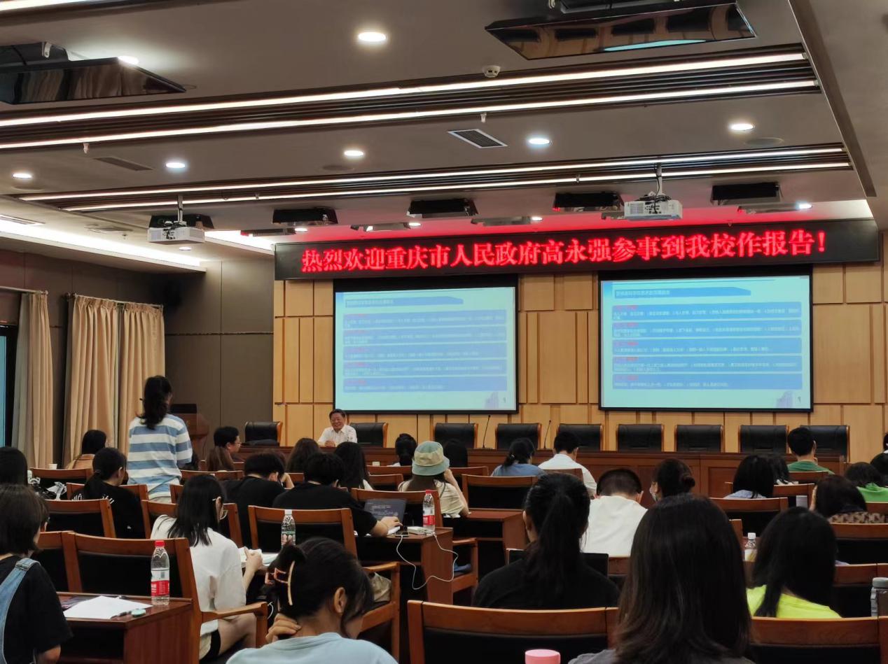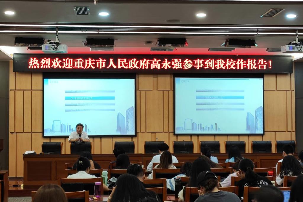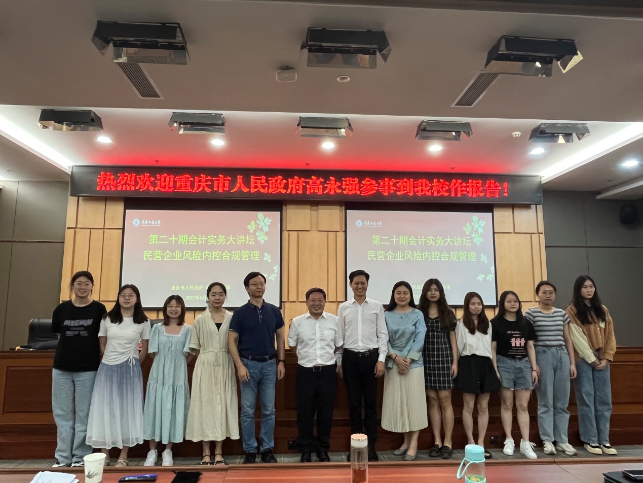 2022年6月16日下午,重庆工商大学OK138太阳集团第二十期会计实务大讲坛在图书馆第一会议室隆重举行,现任重庆市人民政府参事、中国建设银行重庆市分行风险总监暨纪委书记、高级经济师高永强先生应邀为师生们做了题为《风险、合规与内控》的专题讲座。讲座由OK138太阳集团副院长钟廷勇副教授主持,OK138太阳集团部分师生代表参加了本次讲座。