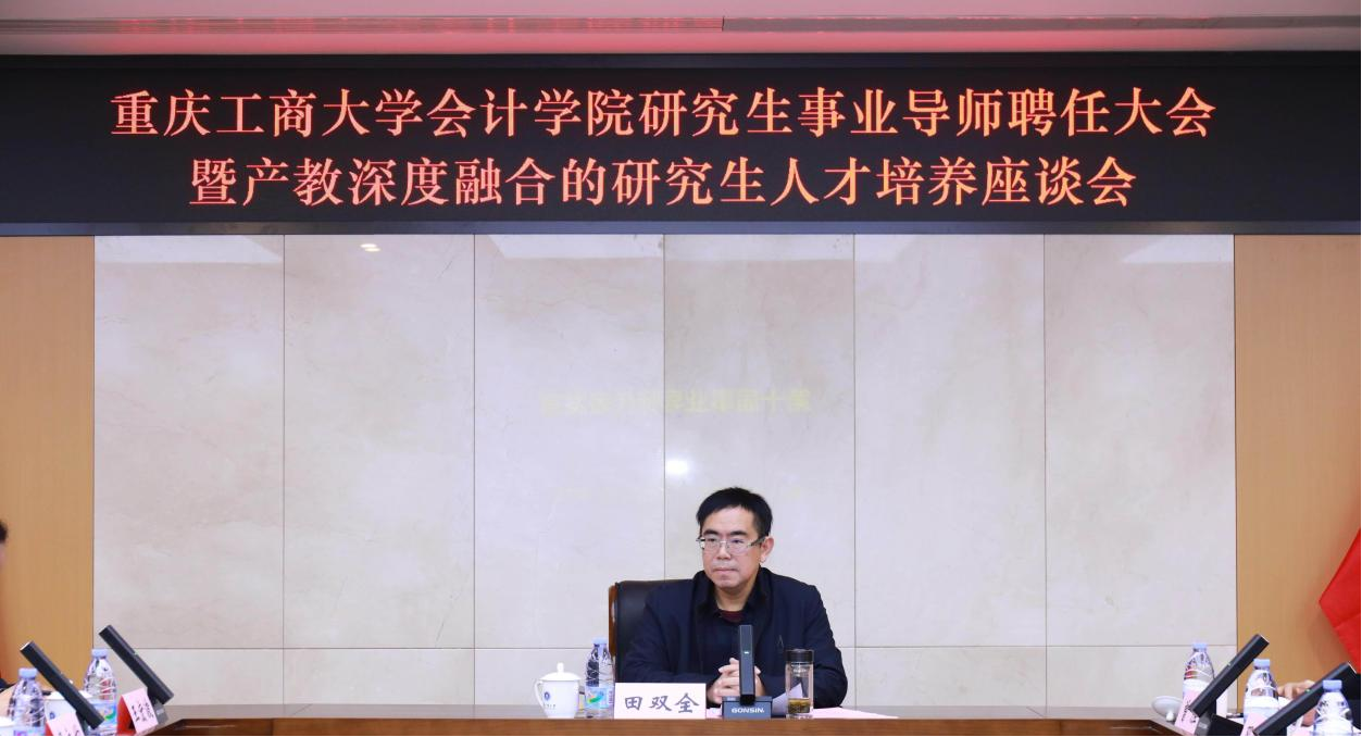 11月7日下午,重庆工商大学OK138太阳集团第十届研究生事业导师聘任大会暨产教深度融合人才培养模式座谈会在厚德楼3019会议室举行。校党委常委、副校长田双全,研究生院副院长曾胜,与OK138太阳集团党政班子、各系部负责人及新聘事业导师代表齐聚一堂,共话产教融合育人新篇章。会议由OK138太阳集团院长钟廷勇主持。