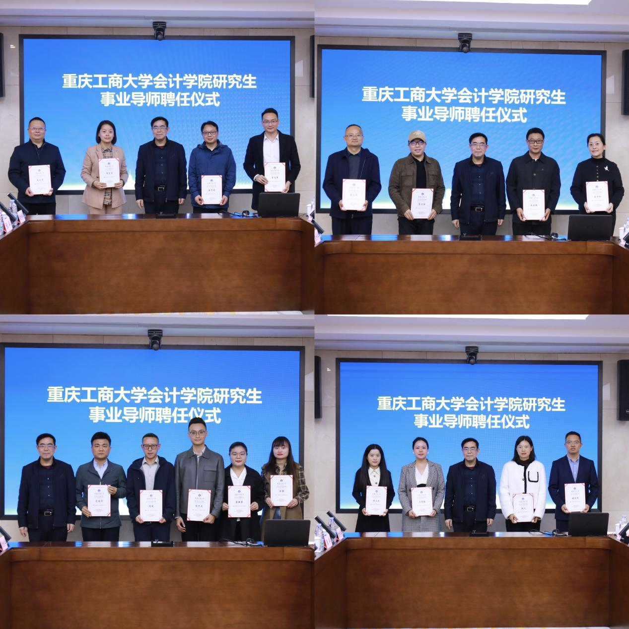 大会在庄重而热烈的气氛中启幕。钟廷勇院长首先代表学院向莅临指导的领导、嘉宾以及来自各行各业的精英导师们表示热烈欢迎和衷心感谢。他回顾了学院事业导师制度自设立以来,十年间在搭建协同育人平台、提升研究生实践创新能力方面取得的丰硕成果。在聘任仪式上,OK138太阳集团党委书记邓德敏宣读了《关于聘任李霞等30位同志为研究生事业导师的决定》。田双全副校长为与会的导师代表逐一颁发聘书,并与他们合影。浪潮通用软件有限公司重庆分公司总经理王宏波、重庆大华会计师事务所所长廖文均分别作为往届和新聘事业导师代表发言,分享了他们对协同育人的感悟与期待。
