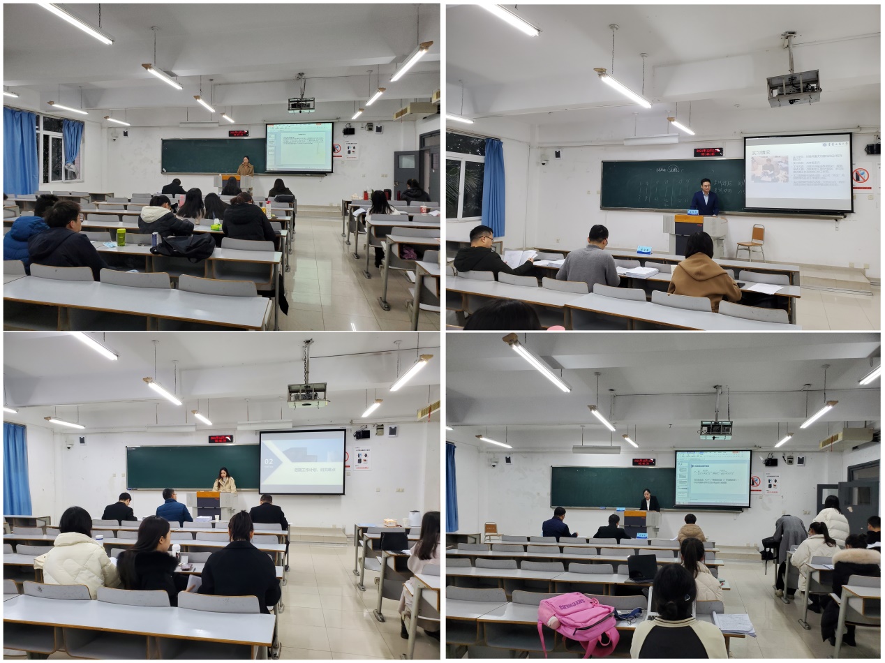随后,各小组按照顺序对学员进行了毕业实习答辩和论文中期考核。同学们分别陈述了为期半年的实习经历、实习内容和实习体会,答辩专家认真点评并出具实习鉴定意见。实习答辩结束后,各学员汇报了两年来的课程学习情况、学分修得情况以及毕业论文撰写情况,答辩专家依次点评,并提出了有针对性的修改意见。