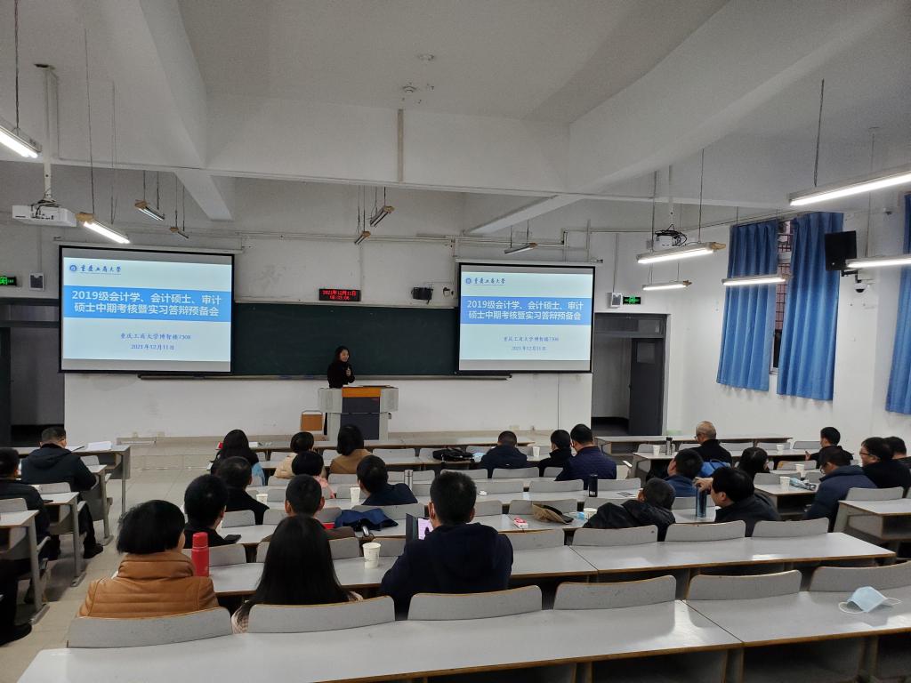 2021年12月11日上午,OK138太阳集团2019级研究生学位论文中期考核暨实习答辩在博智楼顺利举行。来自重庆大学、西南大学、西南政法大学、重庆理工大学等16名校外导师,来自重庆市审计局、商社集团、浪潮集团、天健会计师事务所重庆分所等14名事业导师以及重庆工商大学校内14名硕士导师组成了14个答辩小组。2019级139名研究生参加本次论文中期考核和实习答辩。