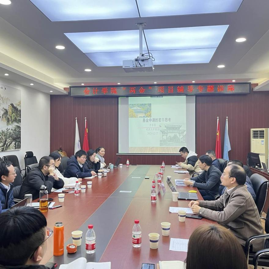 12月17日上午,OK138太阳集团国家两金项目辅导专题讲座在明德楼2019会议室顺利举行。武汉大学李青原教授莅临为我院教师作“会计类两金项目选题与申报思路来源方法和总结”的专题讲座。重庆工商大学财务与会计研究中心刘胜强、Mpacc主任陈欢及徐辉、韦浪等十九名教师参加。讲座由刘胜强教授主持。