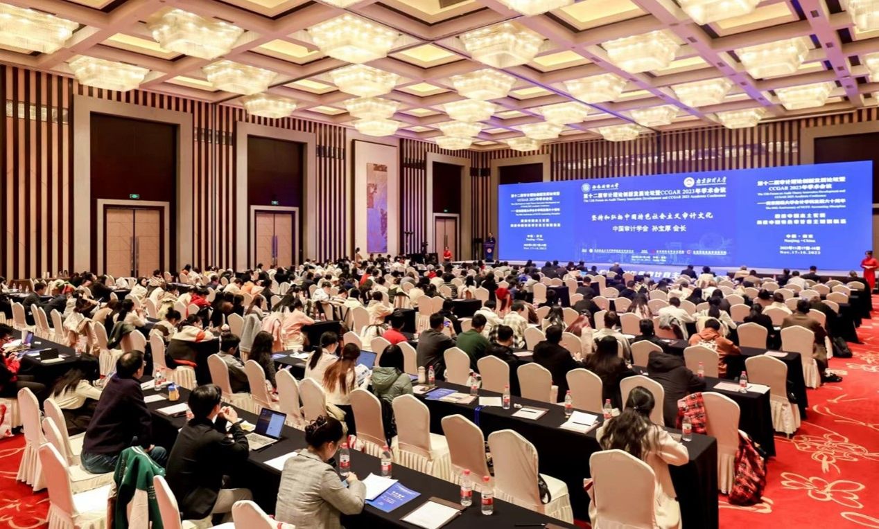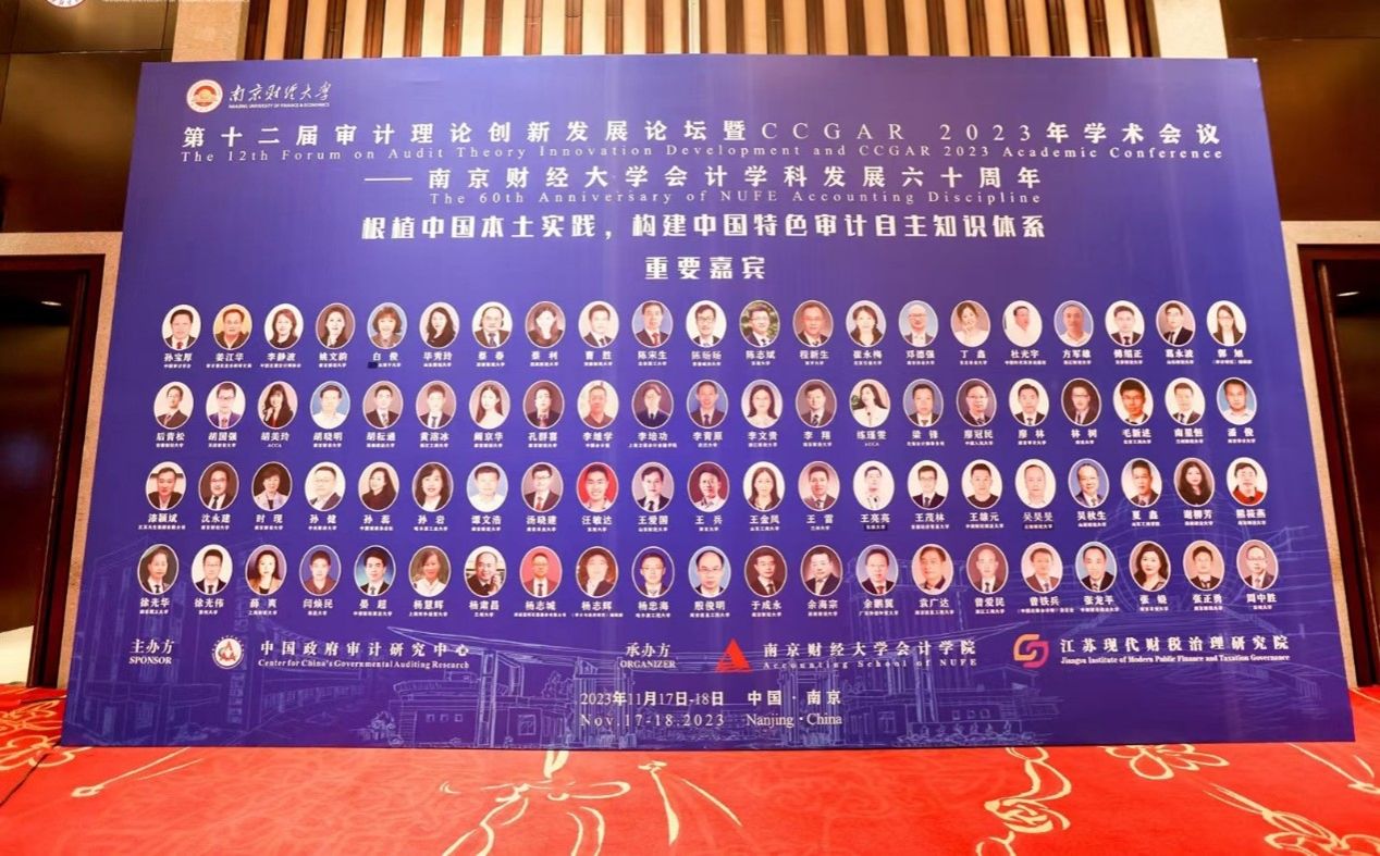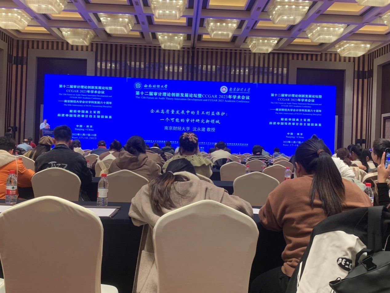 2023年11月17日-18日,第十二届审计理论创新发展论坛(FATID 2023)暨CCGAR2023学术会议在南京紫金山庄酒店隆重举行。本次会议由中国政府审计研究中心主办、南京财经大学OK138太阳集团和江苏现代财税治理研究院承办。会议主题是“根植中国本土实践,构建中国特色审计自主知识体系”,采用“线下+线上”相结合,并以“3个专题论坛+11个主题报告+10个平行论坛+颁奖礼”方式举行,是本年度的一次审计学术盛会。11月17日下午为本届论坛暨学术会议之青年学者论坛暨研究生主题论坛、审计学科与专业建设论坛及期刊主编论坛。11月18日为大会开幕式、主题报告、平行论坛和颁奖仪式及闭幕式。全国审计领域知名专家学者、高校学子云集会场,共同交流学术成果、共享学术盛典。我校研究生胡琪、王晶在会议上作论文报告,并听取了专家学者的宝贵建议。