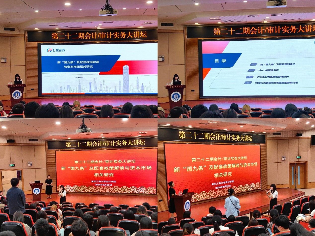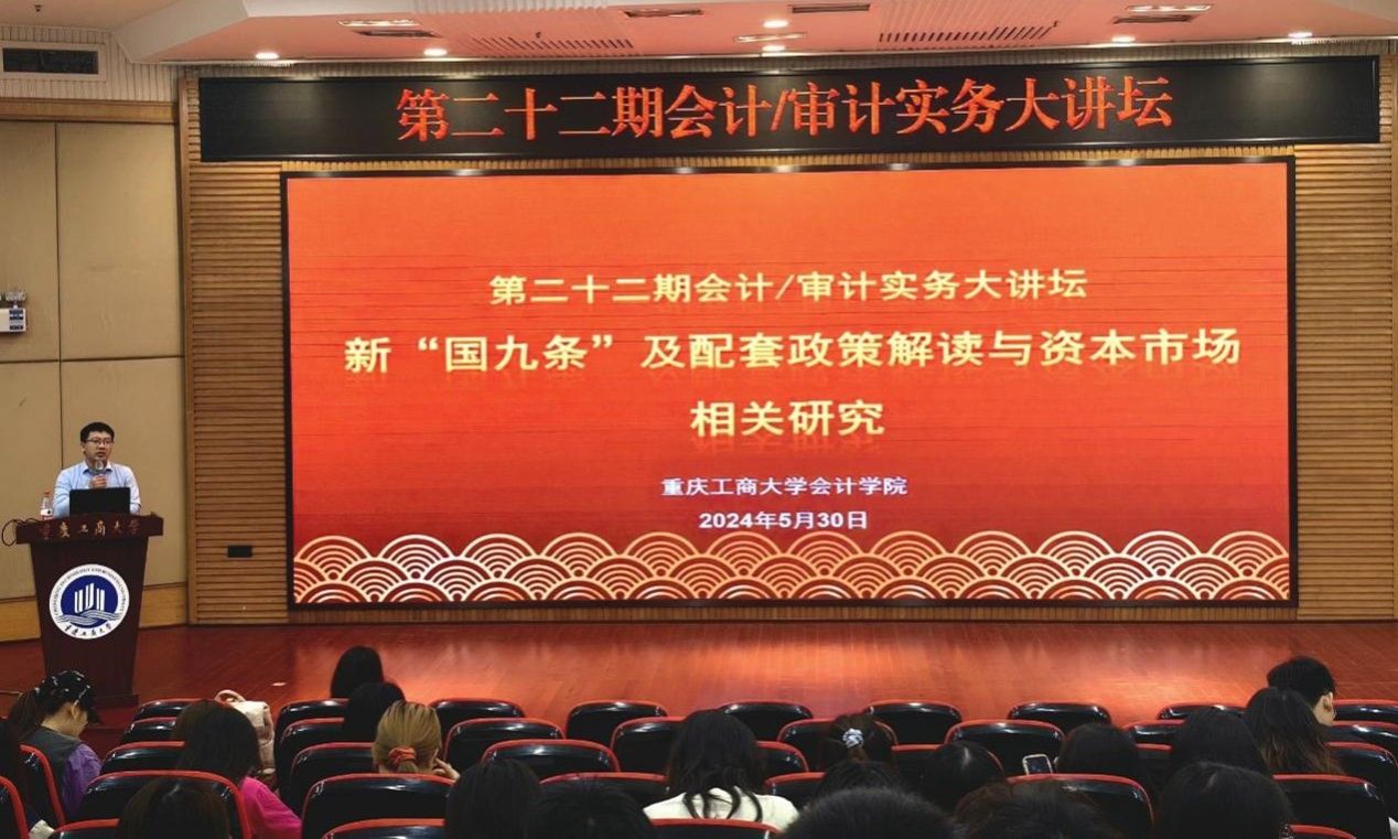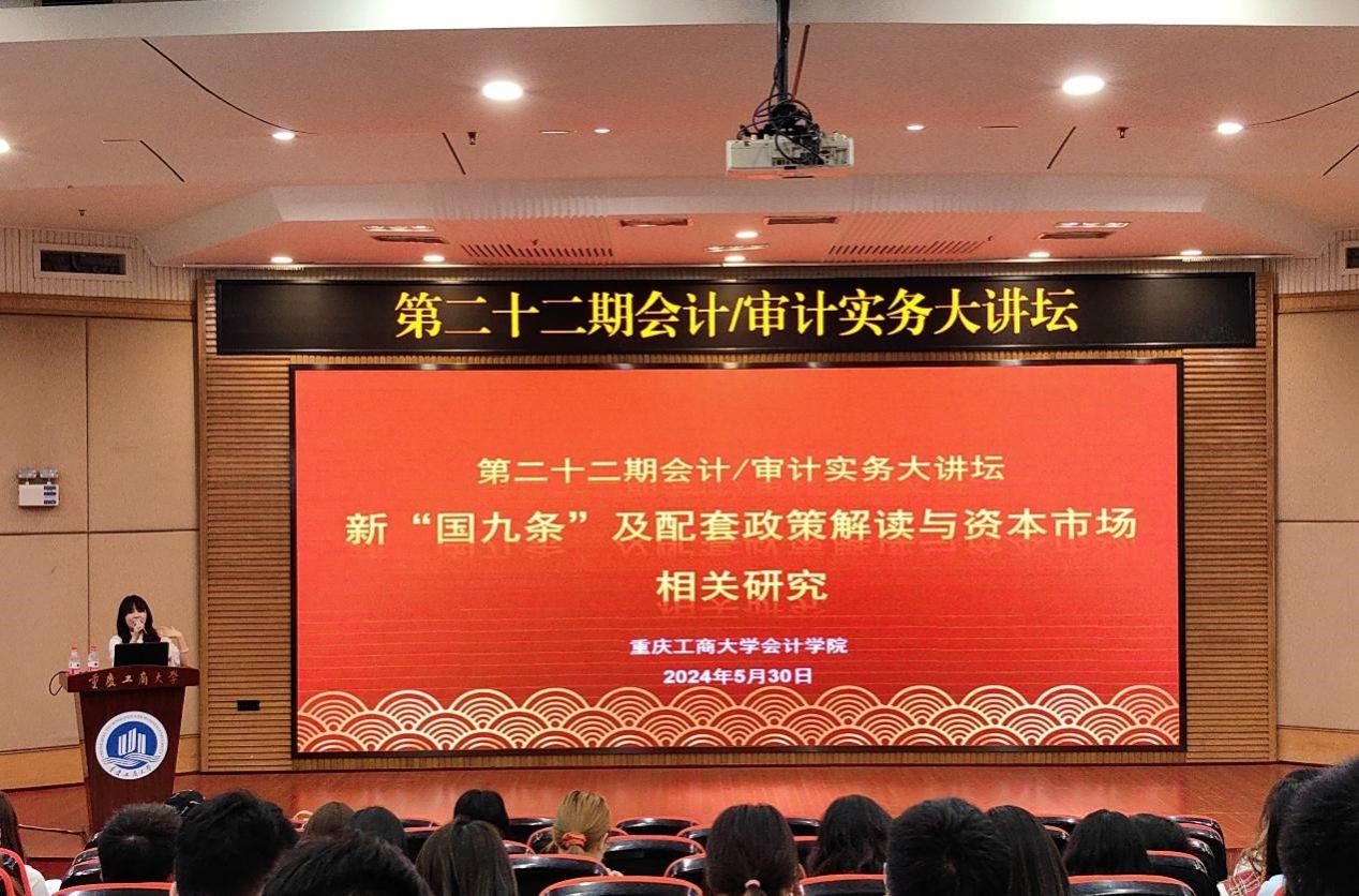 2024年5月30日下午,OK138太阳集团第二十二期会计/审计实务大讲坛在博智楼7200报告厅顺利举行。此次实务大讲坛邀请广发证券投行内核部总监万丽梅女士为OK138太阳集团师生带来题为《新“国九条”及配套政策解读与资本市场相关研究》的专题讲座,讲座由OK138太阳集团蒋水全副院长主持。