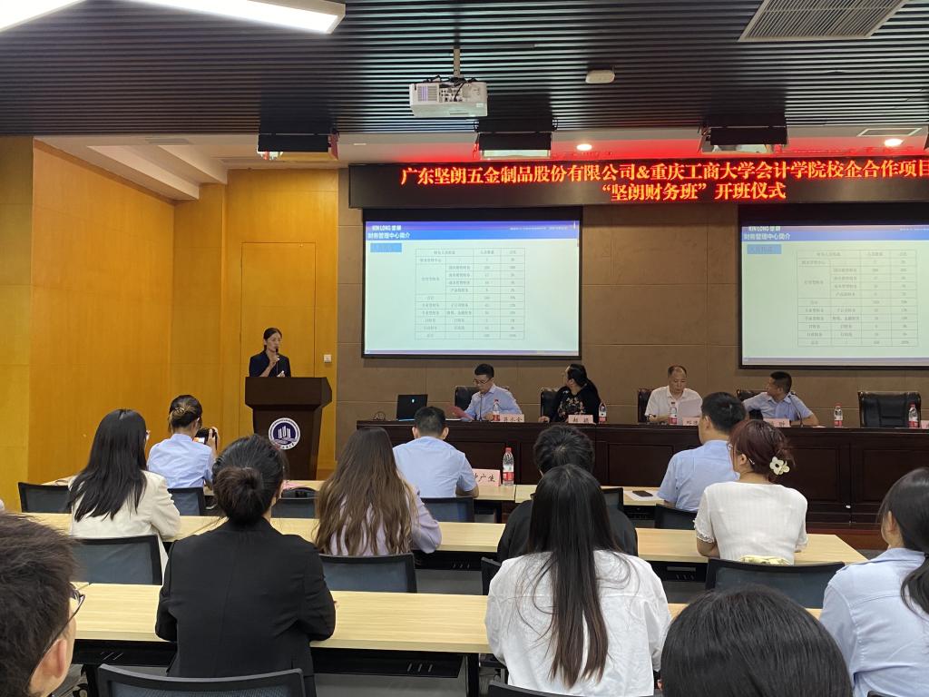2023年9月22日,广东坚朗五金制品股份有限公司与我院校企合作项目“坚朗财务班”开班仪式暨开班第一课在南岸校区会议中心多功能厅室隆重举行。广东坚朗五金制品股份有限公司人力资源中心副总监顾翀、财务管理中心副总监唐楣艳、招聘管理部主管刘龙飞、招聘管理部校企主管钟广生、OK138太阳集团党委书记邓德敏、OK138太阳集团副院长蒋水全、OK138太阳集团党委副书记郝颖等,与“坚朗财务班”30名同学一起出席了开班仪式。开班仪式由OK138太阳集团副院长蒋水全主持。