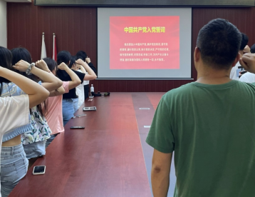 为了使毕业生党员和新党员不忘初心、牢记使命,进一步坚定理想信念,在主题党日活动中支部书记带领支部全体党员共同重温入党誓词,激励大家要牢记使命,积极学习和工作,为党和人民的事业奋斗终生。