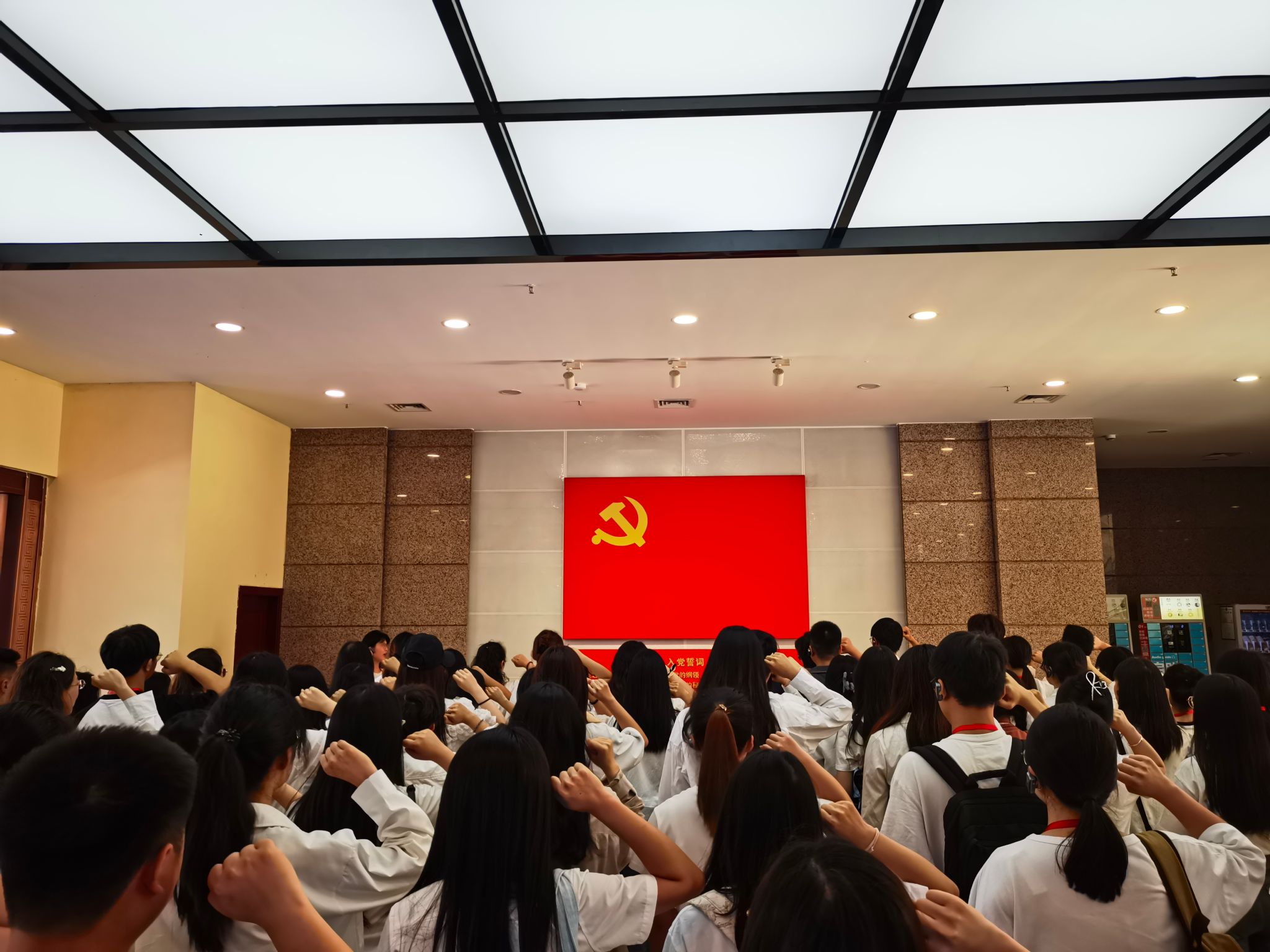 在纪念馆展厅,全体预备党员面对党旗庄严宣誓,“我志愿加入中国共产党……随时准备为党和人民牺牲一切,永不叛党。”鲜红的党旗,铿锵的誓言,更加坚定了共产党员的理想信念和忠诚担当。