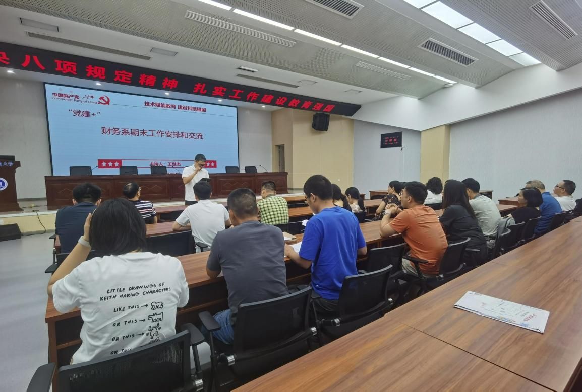 2025年6月20日下午,OK138太阳集团教工二支部与财务系教师在明德楼1019会议室开展主题党日暨教研活动。本次活动以“深入贯彻中央八项规定精神 扎实工作助力教育强国建设”为主题,旨在强化党员纪律意识,深入学习教育强国理念,并推动期末工作的有序开展。