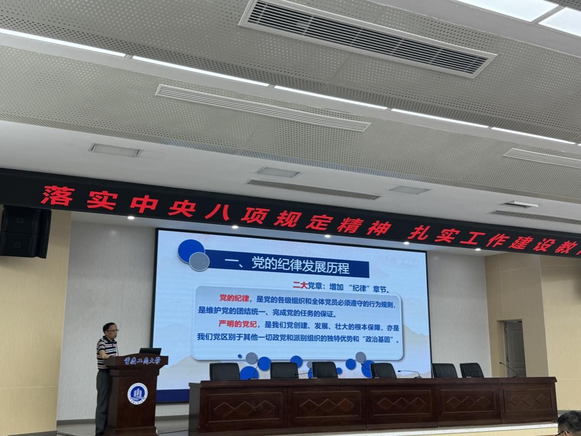 活动伊始,专职组织员尹建平同志以“深入贯彻中央八项规定精神”为题,为全体党员带来了一堂生动的党课。尹建平同志从党的纪律发展历程入手,详细回顾了中国共产党自成立以来,纪律建设如何在不同历史时期发挥关键作用,为党的事业发展提供坚实保障。通过丰富的历史资料和鲜活案例,党员们深刻认识严明的党纪,是我们党创建、发展、壮大的根本保障,亦是我们党区别于其他一切政党和派别组织的独特优势和“政治基因”。接着,尹建平同志对中央八项规定精神进行了深入解读,从规定的出台背景、主要内容到实施后的显著成效,一一进行剖析。特别强调了八项规定对于改进工作作风、密切联系群众的重要意义,要求党员教师们在日常工作中自觉遵守,以身作则,以扎实的工作作风为教育事业贡献力量。