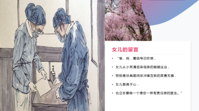 谭志钦(学生预备党员):两代同战“疫”,母女皆英雄。在她们身上,我看到了属于巾帼英雄的温柔和勇敢,更看到了信仰的传递。
