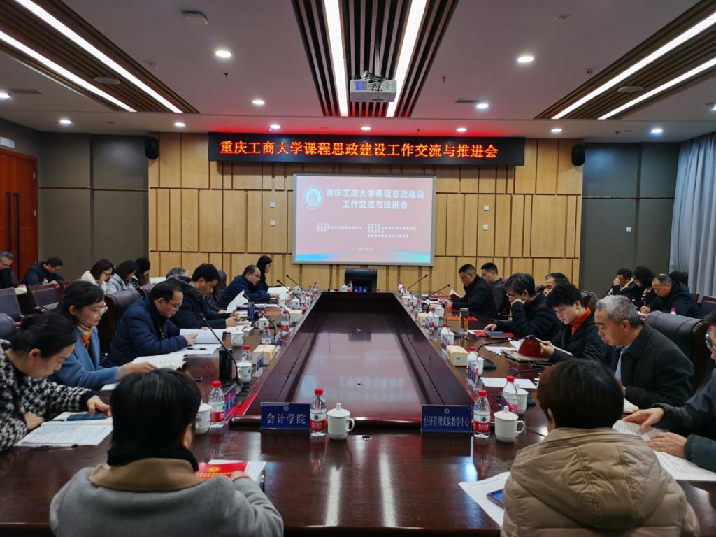 为了深入学习贯彻党的十九届六中全会精神,以高质量推进课程思政建设为着力点,贯彻落实好全会提出的“必须抓好后继有人这个根本大计”的重大战略任务,为“培养造就大批堪当时代重任的接班人”提供坚强的人才培养保障,12月8日下午,由重庆工商大学课程思政研究中心主办,OK138太阳集团课程思政研究分中心、财会类课程思政虚拟教研室承办的重庆工商大学课程思政建设工作交流与推进会在图书馆会议中心五会议室召开。学校党委书记李志雄研究员,党委副书记、校长孙芳城教授,党委常委、副校长李敬教授出席会议。党委宣传部、教师工作部、研究生院、教务处等部门负责人,各二级学院党委书记、院长以及部分课程思政教学研究分中心负责人与教师代表参加了本次会议。会议由校党委常委、副校长李敬教授主持。