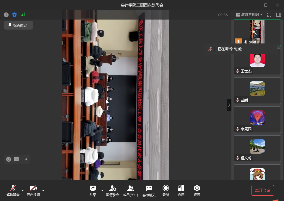 下午15点30分,在庄严的国歌声中,大会开幕。本次大会采取线下线上相结合的形式召开,103名教代会代表和工代会代表参会,本次大会共有听取并审议学院工作报告、教代会工会工作报告、学院财务工作报告、工会委员会经费收支情况报告、增补学院第四届教代会、工会委员等几项议程,刘斌主持开幕式。