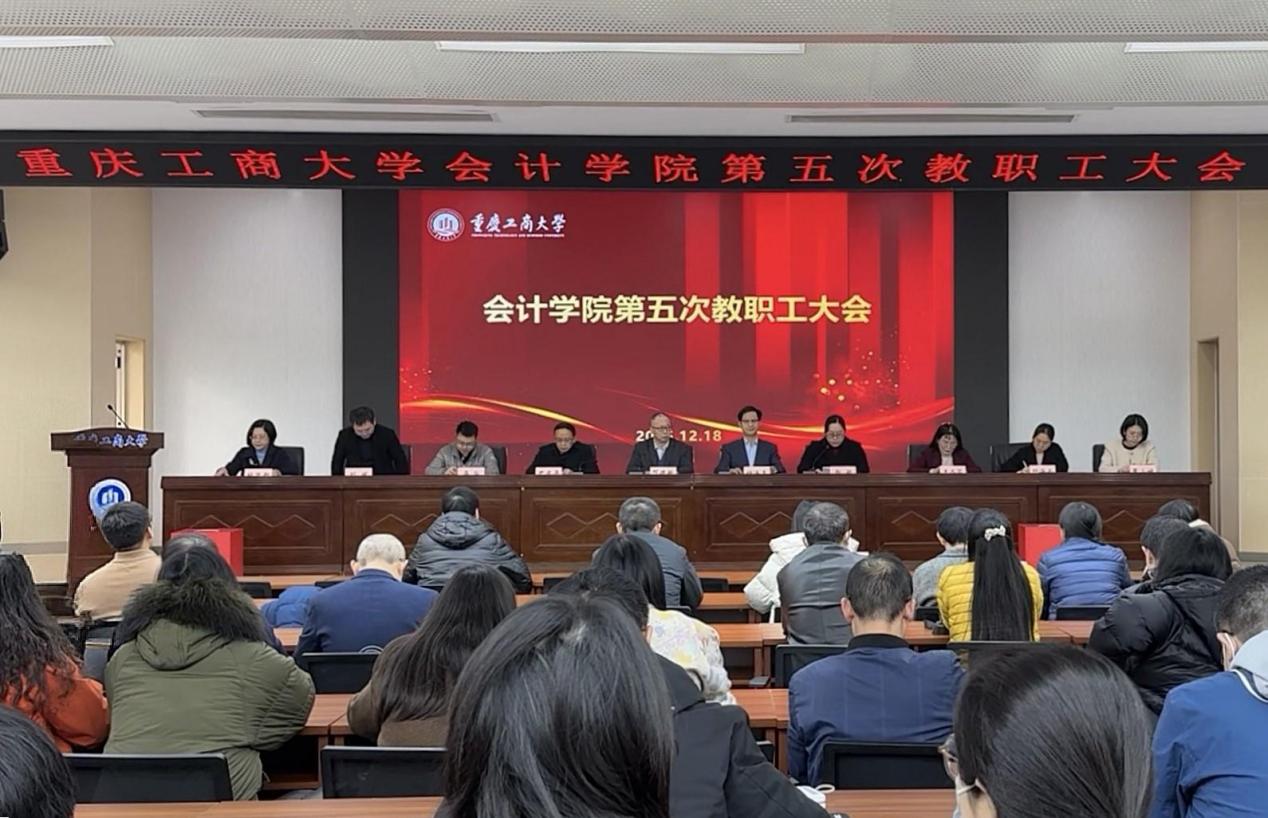 邓德敏书记为大会致开幕词。他表达了对本次大会顺利召开的热烈祝贺和对全院教职工的由衷感谢,同时强调召开教职工大会对我院教职工政治生活的重要性,殷切希望全体教职工发扬主人翁精神,从有利学院建设的角度出发,畅所欲言,集思广益,并以此推动学院工作再上台阶。接着,钟廷勇院长就第四次教职工代表大会召开以来的学院事业发展工作情况做汇报。他从坚持党建引领、坚持思政铸魂、教学成果、科研产出等八个方面总结了过去一年的主要工作和成效,也指出了存在的问题与不足,既锚定了长远发展方向,又明确了2026年——“十五五”开局之年的攻坚重点。综合办主任付海南作学院财务工作报告,汇报了2025年收支情况以及财务内控成效,强调将继续贯彻学院各项财务制度,优化资源配置,服务学院建设,持续保障学院各项工作的稳定运行。随后,学院工会主席刘斌作工会工作报告。他汇报了工会在职工思想与能力建设、学科建设、技能提升等方面的成果,展示工会对教职工的人文关怀措施,“职工之家”再次获评重庆市“二星职工小家”。同时描绘了学院工会未来工作蓝图。杜迎新作第四届教职工大会执行委员会提案工作报告。