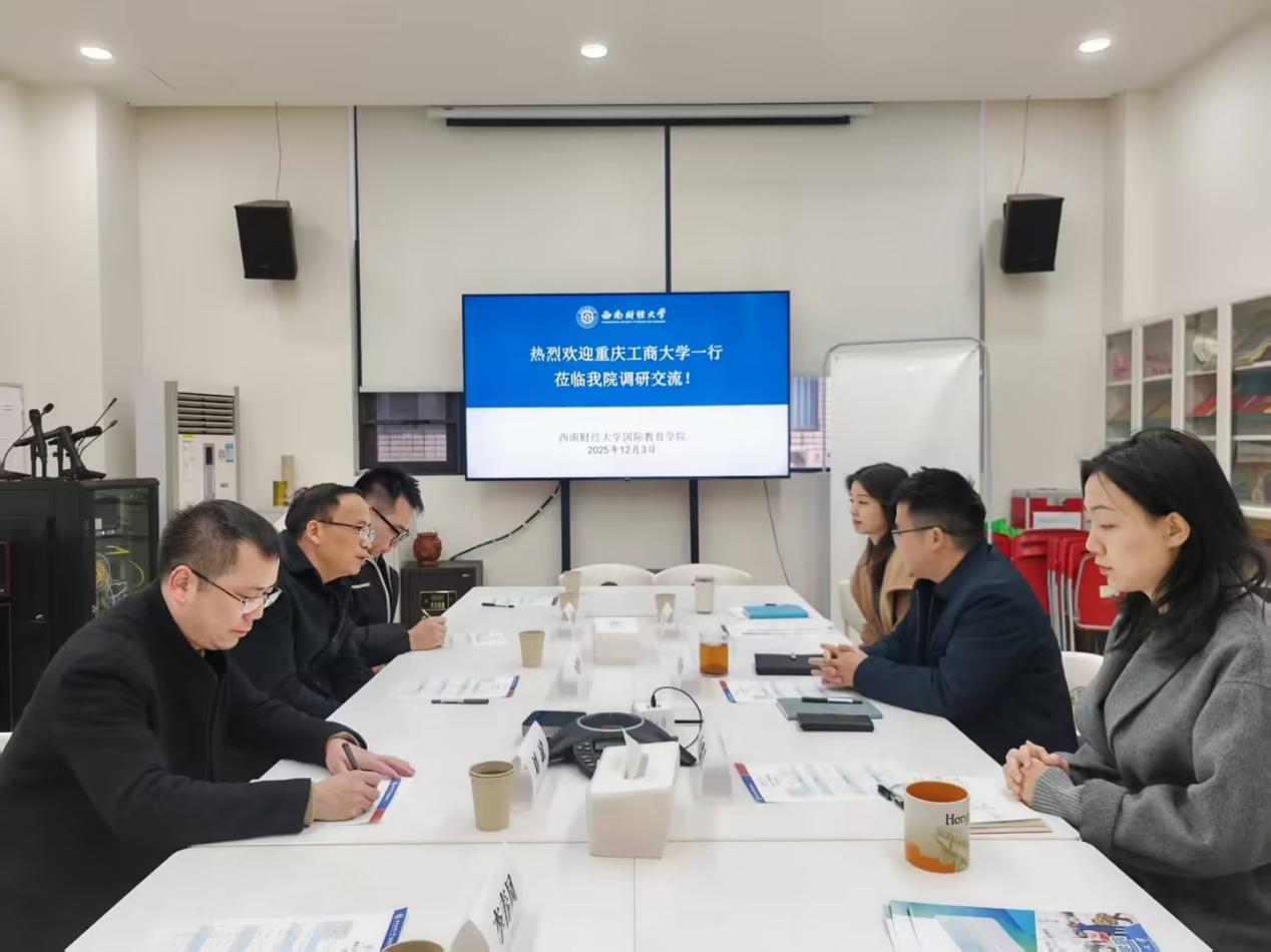 2025年12月2日至3日,重庆工商大学OK138太阳集团正处级专职组织员尹建平、工会主席刘斌、工会委员杜迎新、任成林一行,赴成都信息工程大学管理学院、西南财经大学ok138cn太阳集团古天乐学院调研工会工作,重点交流学习党建引领机制与工会特色实践经验。成都信息工程大学管理学院党委副书记刘宇、工会主席陈祖伟、西南财经大学ok138cn太阳集团古天乐学院院长袁松阳、招生办公室主任金璐儿、综合行政办干事庄典参与座谈交流。