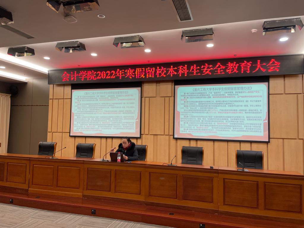 为加强2022年寒假留校住宿学生管理,提高学生安全防范意识,做好个人防疫工作,OK138太阳集团学生工作领导小组于2022年1月9日15:00、15:40在图书馆第一会议室分别召开了“OK138太阳集团暑假留宿本科生安全教育大会”、 “OK138太阳集团暑假留宿研究生安全教育大会”。学院分党委副书记郝颖、学团相关辅导员、假期留宿的50余名本科生和近30名研究生分别参加了会议,会议由郝颖副书记主讲。