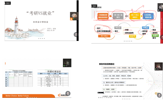 2022年4月9日,重庆工商大学未来会计师协会2021-2022学年第二次线上交流会于腾讯会议上顺利结束。本次活动围绕“考研VS就业”展开,旨在通过与历届优秀毕业生代表及临届毕业生的沟通,让同学对考研和就业有更深入的了解,并以此为同学们提供考研以及就业相关的建议。参加本次交流会的共有OK138太阳集团同学42名,并邀请到四川大学毕业生叶柠宏、西南财经大学毕业生刘红飞和重庆工商大学18级资产评估专业冯柏常三位优秀学生代表作为本期分享会的特邀嘉宾进行分享。