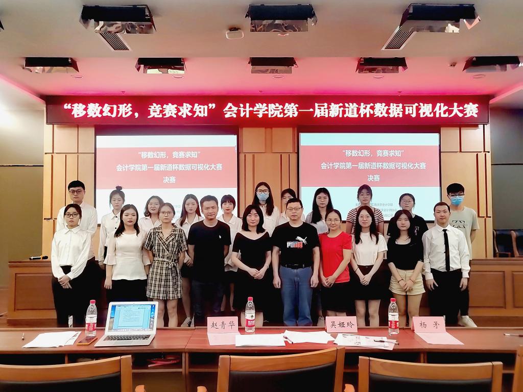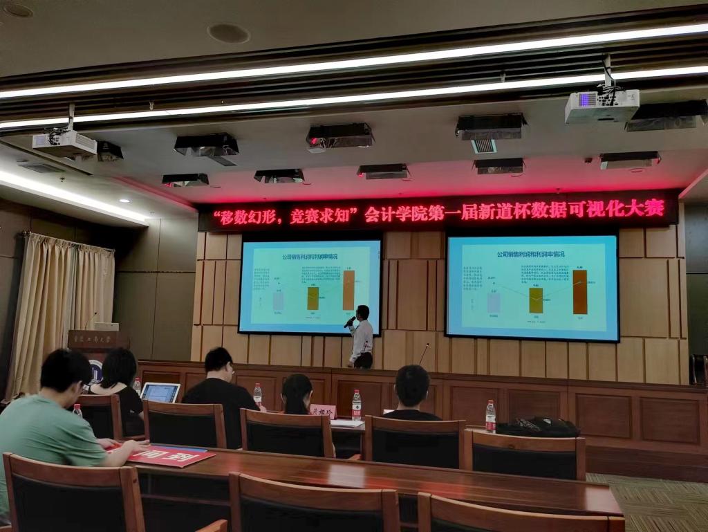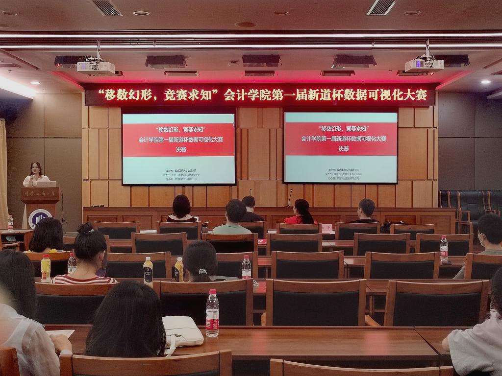 2022年6月17日,由重庆工商大学未来会计师协会承办,新道云科技协办的“移数幻形,竞赛求知”第一届新道杯数据可视化大赛决赛于图书馆第一会议室成功举办。我校OK138太阳集团吴娅玲老师、赵青华老师、杨矛老师和新道科技股份有限公司重庆市市场总监张野女士莅临了活动现场。本次大赛围绕财务可视化,帮助同学们锻炼数据分析能力和“数字化能力”,更好适应未来职场需求,有七支队伍通过初赛入决赛。