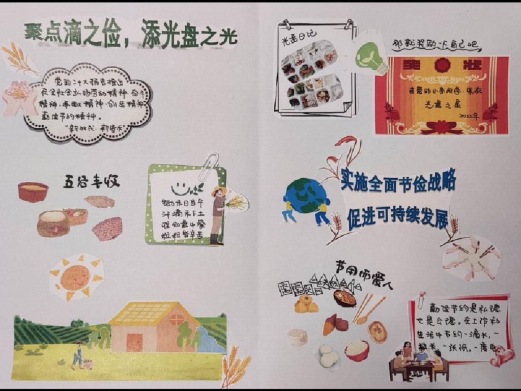 民以食为天,无节无格,无约无责,无粮无民,无食无国。本次光盘行动手账比赛充分体现了“节约光荣,浪费可耻”的思想观念,让同学们培养节约习惯,遏制舌尖上的浪费,在增强其节约意识时也有利于其体会到劳动不易。相信在本次光盘行动的影响下,我校大学生会更加意识到节约粮食、反对浪费的重要性,并将这种精神落实到实际生活中。