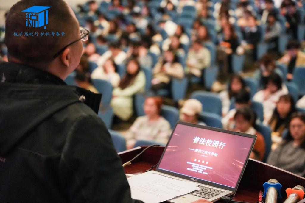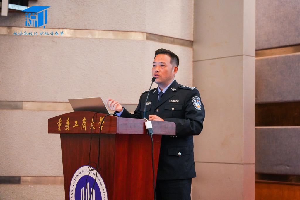 最后,重庆市公安局南岸分局南坪镇派出所、反诈支队金牌讲师盖洪警官以“识别虚假身份,慎防各类诈骗”为主题进行了反诈骗宣讲。盖警官举了多个电信诈骗案例,生动形象地向学生们介绍了通讯网络诈骗及其特点,揭示了通讯网络诈骗发展很迅速、手段更新快、非接触性、跨国跨境突出等特点。此外,宣讲过程中,盖警官还调动同学们进行问答互动,提高了同学们对本次宣讲的参与度和对常见诈骗情境的警觉性。