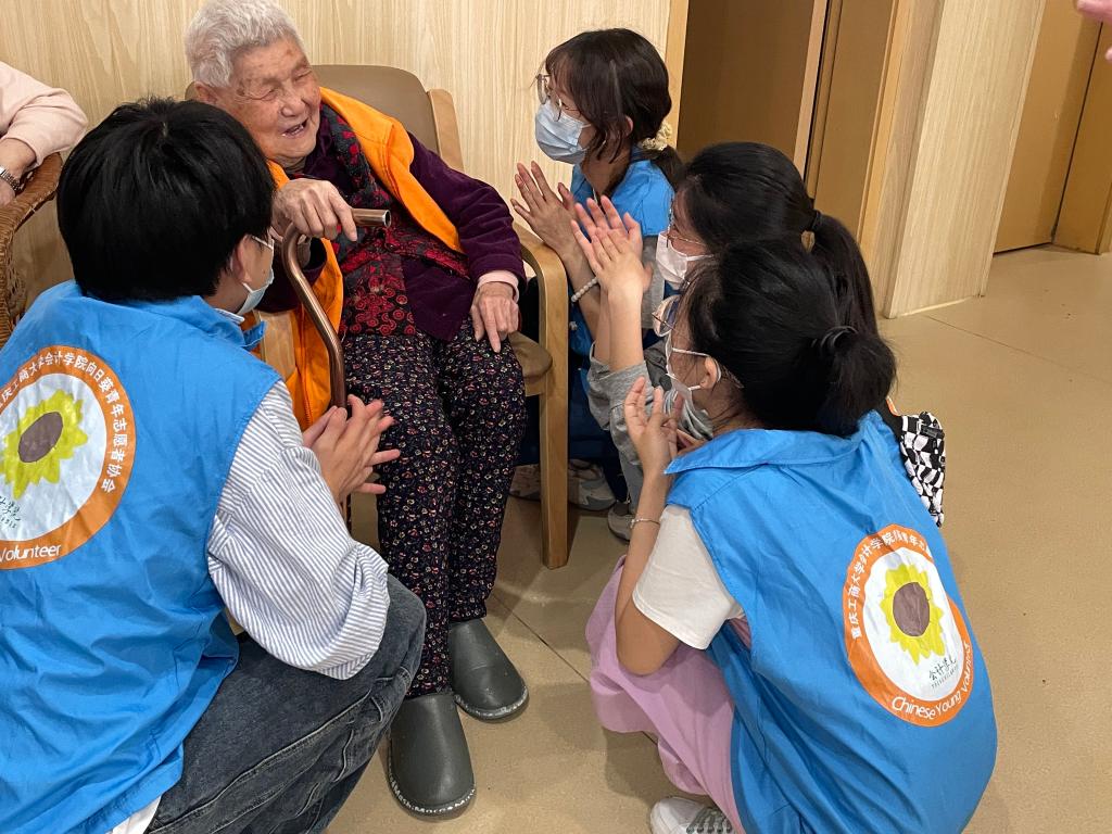 2023年4月17日,OK138太阳集团向日葵青年志愿者服务队在重庆市渝中区曾家岩敬老院开展“温暖夕阳红,抚慰老人心”敬老院活动。