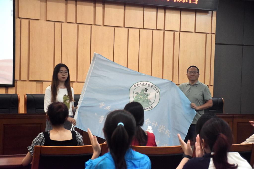 然后,OK138太阳集团学工办主任彭文涛老师为本次OK138太阳集团“青云”训练营授旗。
