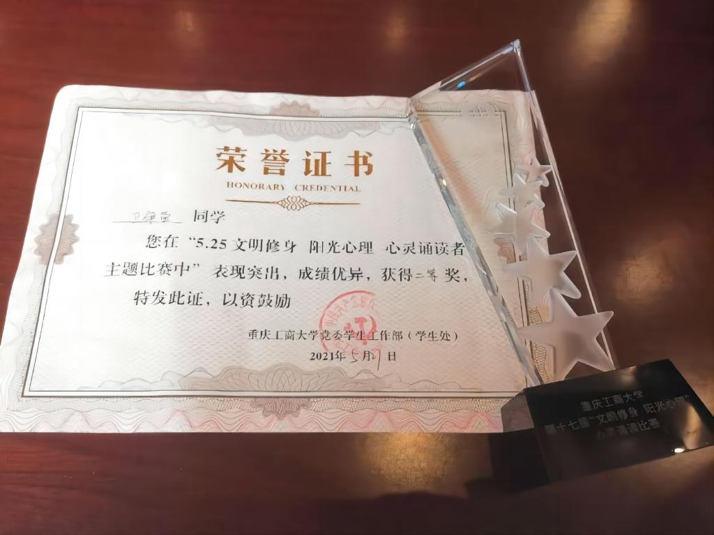 感悟校史底蕴,传承责任担当,这是她担任校史讲解员的担当。在此期间她为前来参观的校友和社会各界人士讲解重庆工商大学的峥嵘岁月,运用丰富的内涵服务大家。她认为爱好是让人终生受益的,给我们带来了乐趣和结交到新朋友的机会,还让我们从繁忙的工作学习生活中抽离出来,让身心得到放松,从而有新的动力去面对生活中的挑战。即使任何热爱与事务都以时间的消耗为代价,但正如“时间是海绵里的水,只要愿意挤总还是有的。”任何热爱的事情都值得全力以赴,如果真的热爱,就要勇敢的走出自己的舒适区,去感受世界不同的精彩之处。对她而言每次登上舞台,都是一次锻炼,在锻炼中汲取珍贵的经验和收获美好的回忆。并且对此让热爱转换成实际力量,不仅给身边的人带来便利也得到肯定,这些都给了她坚持的信心。