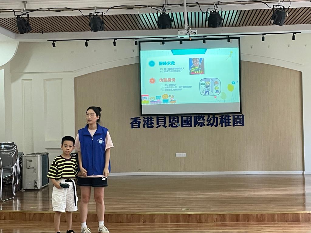 在学习如何防范拐骗后,志愿者小讲师利用情景模拟游戏,通过“假装求救”“伪装身份”等情景“迷惑”小朋友们,让孩子跟着“陌生人”走,大部分小朋友都能识别“迷惑”,勇敢拒绝,不跟“陌生人”走,保护好自己。