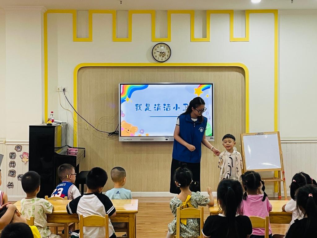 “我是清洁小卫士”,劳育教育主要聚焦于小朋友的清洁卫生教育,从口腔卫生、手部清洁以及养成卫生意识三个板块带领小朋友们认识到了保持自身卫生健康以及保持周围环境清洁卫生的重要性。