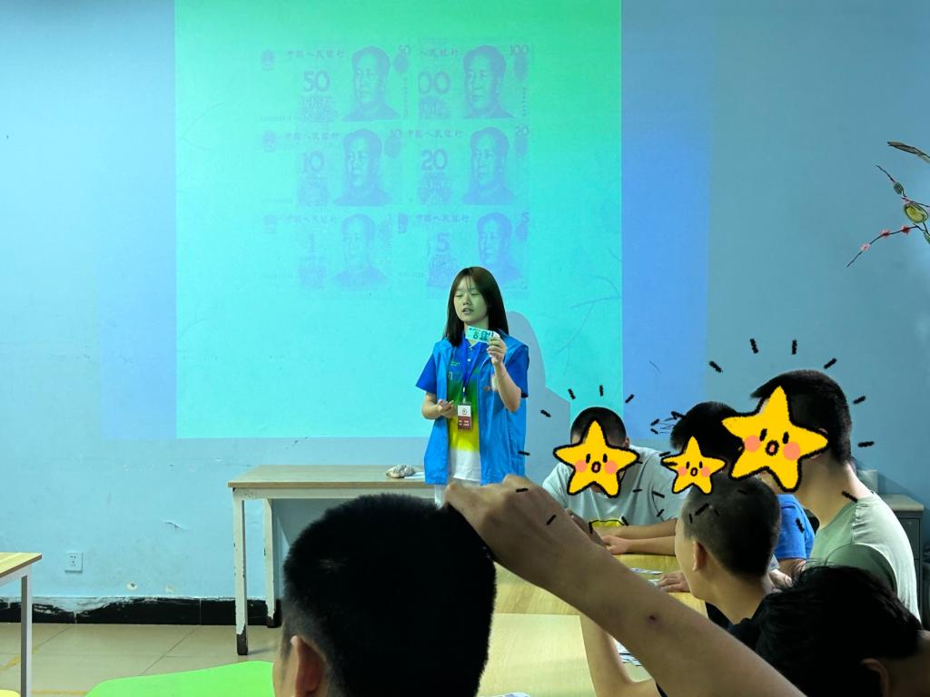 志愿者以“货币”为主题向孩子们介绍中国货币的起源并带领孩子们认识外币和汇率。课堂的开始,志愿者以一则关于货币起源的短片来激发孩子们的好奇与兴趣,并以图文结合的形式进行讲解,让孩子们直观地了解我国货币的外观与起源。之后,志愿者在介绍了我国货币的基础上简单讲解了部分外币,并拓展了汇率的换算与使用的相关知识,丰富了孩子们的知识面。在上课过程中,即使学习的货币知识有些许陌生,但孩子们都会积极地说出自己的想法,志愿者们也会耐心地给他们进行讲解,整个课堂充满着活跃的氛围。