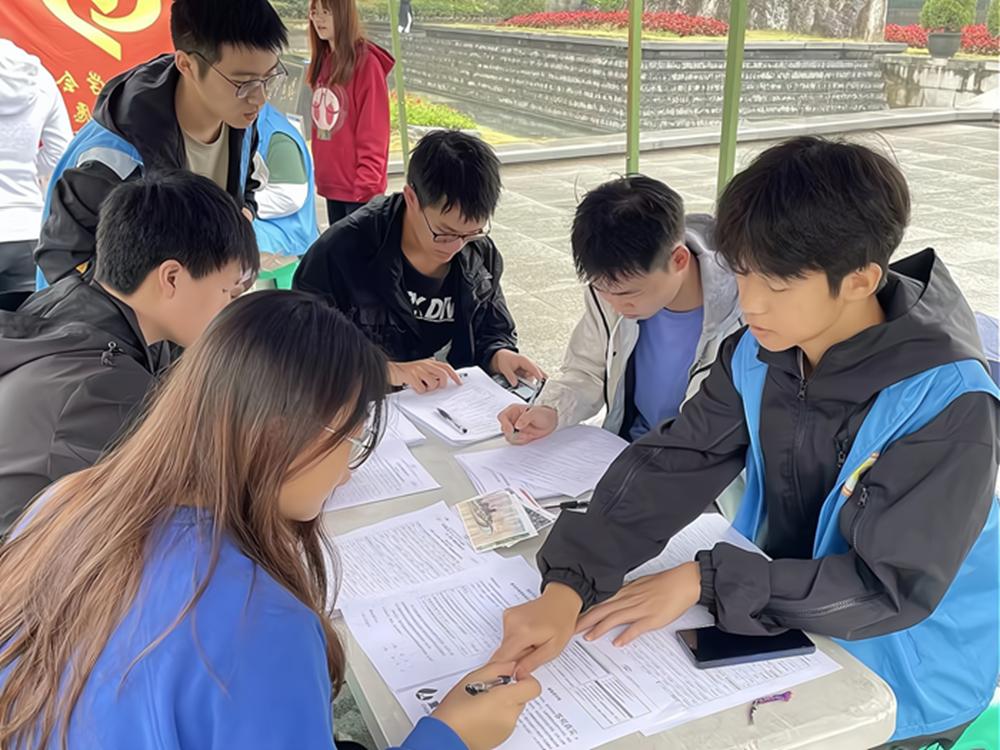 在活动开始之前,向日葵青年志愿者服务队早早为活动开展宣传工作,借助海报和宣传单,鼓励同学们加入活动群,了解献血相关事项。活动开始前的一个小时,相关志愿者紧锣密鼓地开展现场的布置工作,当时的天气阴雨绵绵,但也阻挡不了志愿者们工作的脚步,他们分工明确:布置现场、领取物资、派发传单……当献血车的到来时,现场也已经布置完成。