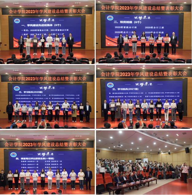 郝颖对学院2023年学风建设工作做总结,她指出:学院秉承“勤学善思、求真笃行”的学风和“诚信精业、含弘自强”的院训,结合专业特点和学生实际,持续优化“导学、辅学、勤学、优学、督学、励学”六位一体学风建设体系,着力培养学院优良学风,形成了以活动促学风、以服务护学风、以榜样树学风、以实践创学风、以管理强学风、以环境育学风的学风建设工作新格局,全力培养德智体美劳全面发展的卓越会计人才。