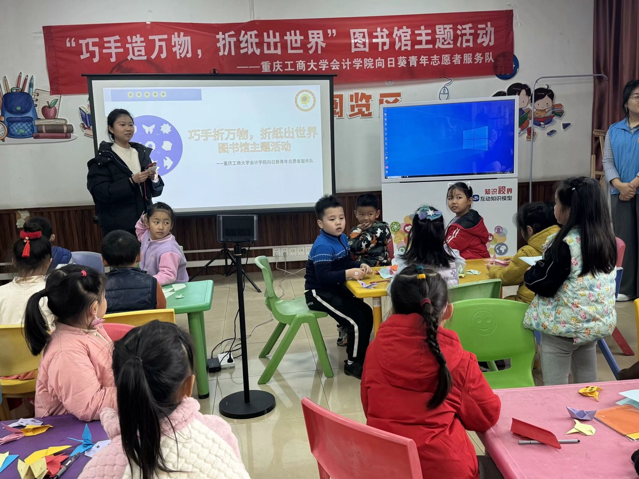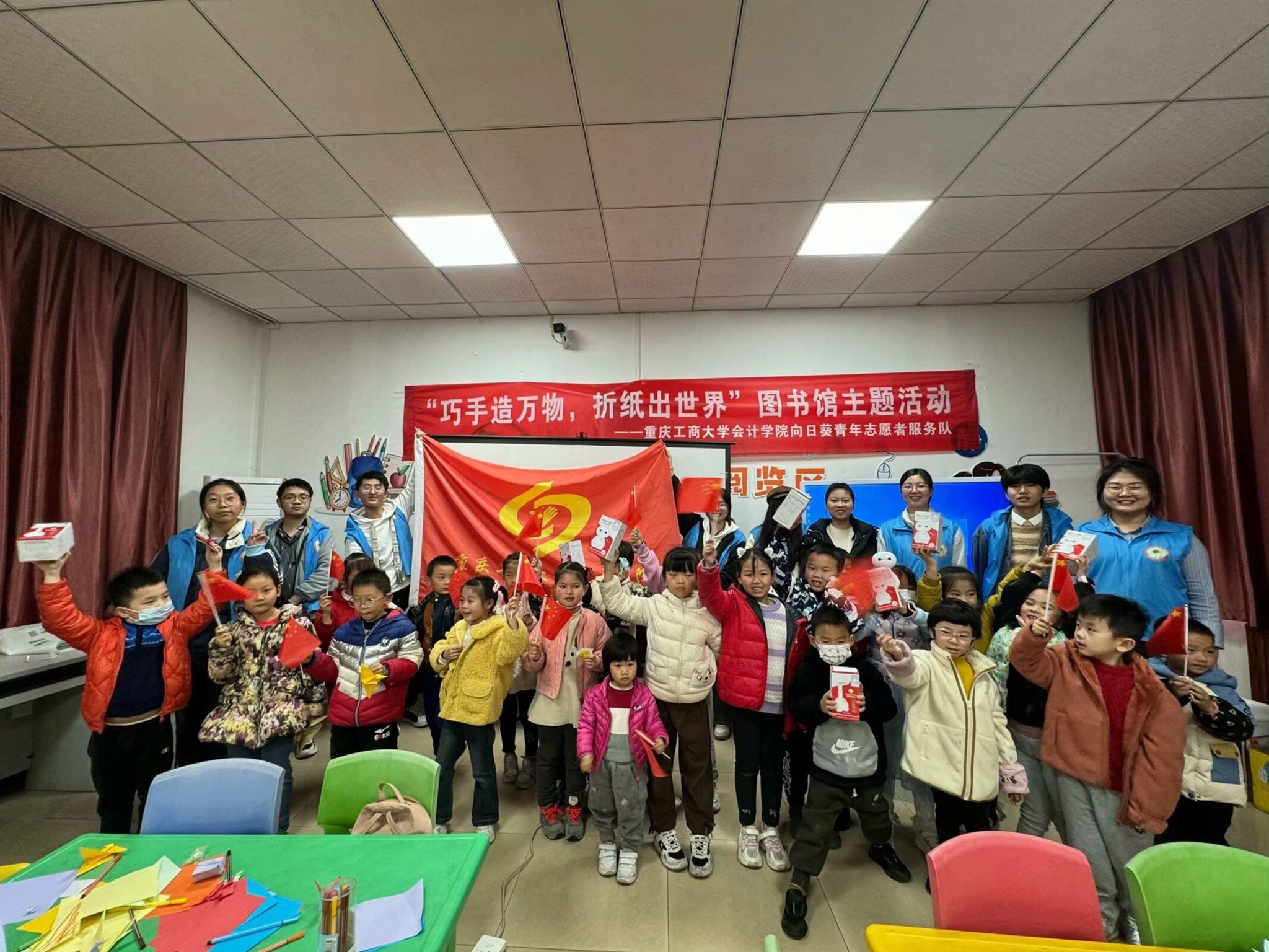 2023年12月10日,重庆工商大学向日葵青年志愿者服务队在重庆市少儿图书馆举办了“巧手造万物,折纸出世界”的图书馆主题活动。该活动通过折纸,用寓教于乐的方式来增强小朋友们保护动物的意识,使小朋友们了解更多的小动物,引导小朋友尊重和喜爱动物。