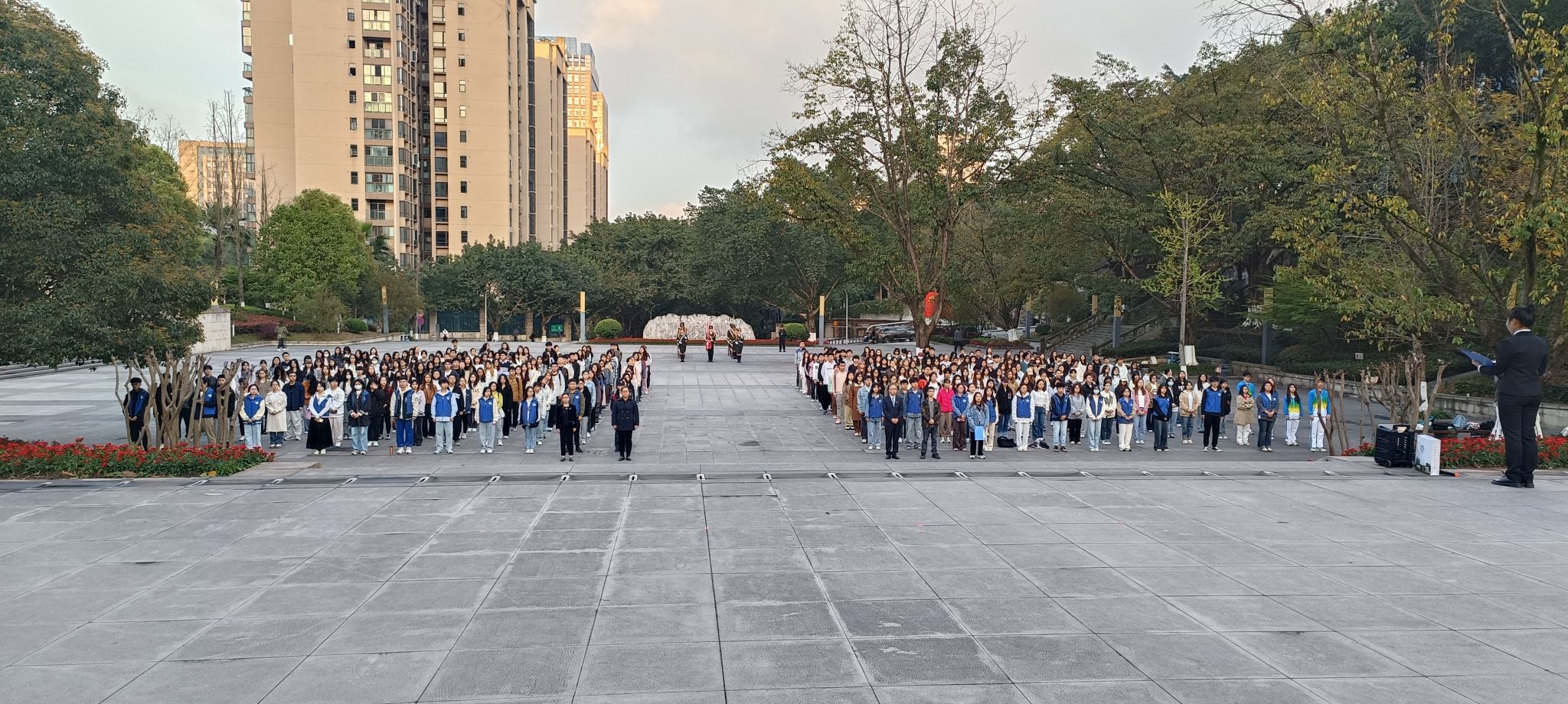 为学习贯彻习近平新时代中国特色社会主义思想,深入贯彻党的廉政文化建设精神,提高学生思想政治素质,重庆工商大学OK138太阳集团于2024年3月25日7:30在南岸校区含弘广场隆重举行了清正廉洁主题教育升旗仪式。OK138太阳集团党委书记邓德敏、党委副书记郝颖、学工办主任彭文涛、辅导员代表、各组织代表、315名本硕学生代表参加了本次升旗仪式,仪式由陈艺主持。