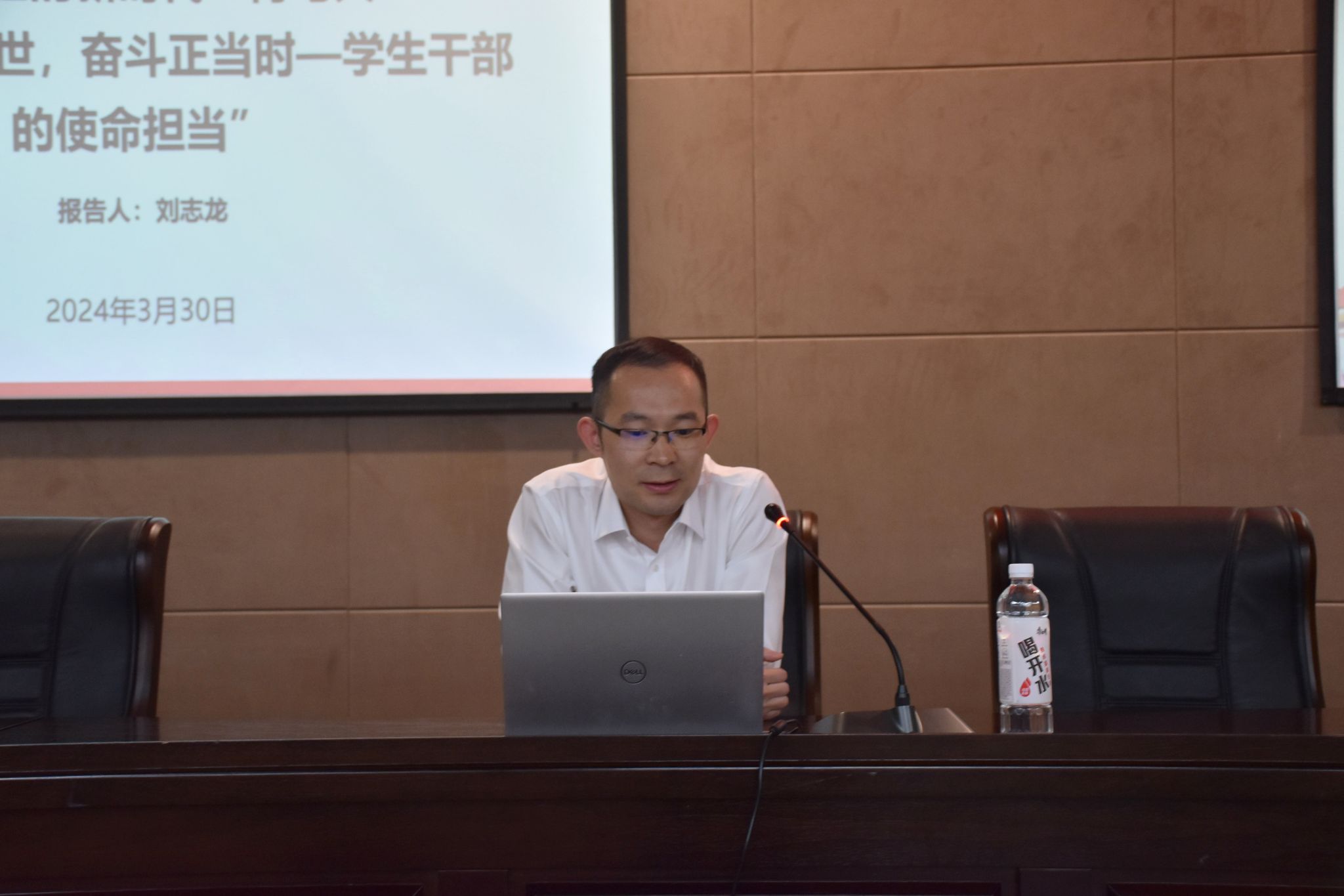 14:00-15:50,中国科学院重庆绿色智能技术研究院刘志龙做了题为“培养堪当大任的新时代‘青马人’—如何做好学生干部”的讲座。在对所在单位及自身做了简单介绍后,他从学生干部分类、学生干部贡献、担任学生干部利弊、学生干部的角色定位、学生干部基本要求、学生干部作用、学生干部不足、学生干部自律公约等多个方面对如何做好学生干部进行详细全面地讲解。面对当下复杂的国际形势,他提醒学生干部要时刻保持警惕,明确方向,顾全大局,公平公正,乐于奉献,勇担时代使命。最后,他鼓励OK138太阳集团广大学生干部们努力成为胸怀大我、锤炼自我、拼搏忘我、建功有我的新时代青年。