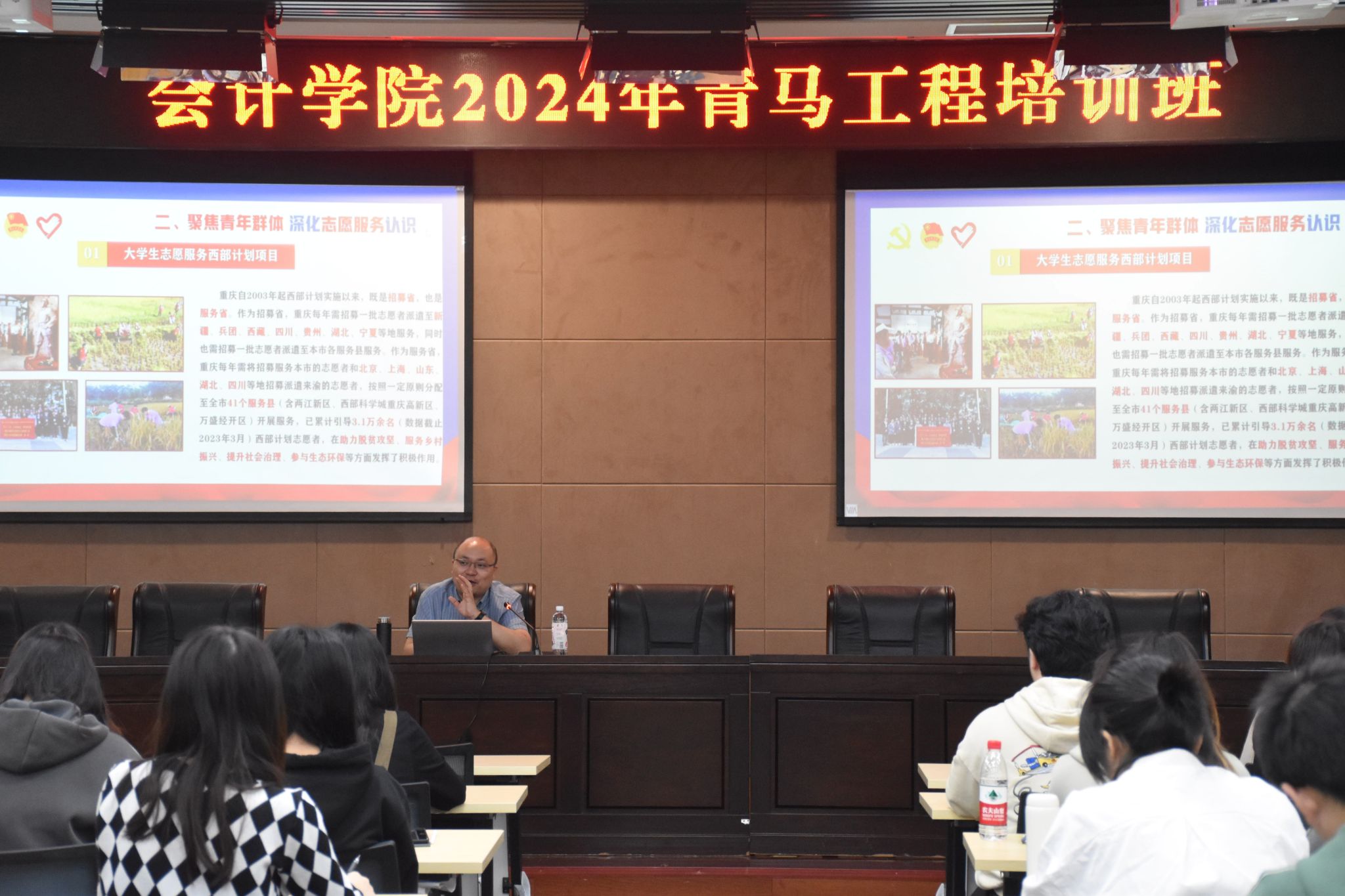 9:00-10:50,团市委青创中心雷筱老师从“回顾发展历程,读懂志愿服务内涵”、“聚焦青年群体,深化志愿服务认识”、“练就过硬本领,扎实志愿服务品牌”、“加强思想引领、凝聚志愿服务力量”等四个方面主讲了“党团知识—我与OK138太阳集团青马工程学员聊聊天”。首先,通过回顾重庆青年志愿服务发展历程,更深入地读懂、领悟志愿服务的内涵。接着,他指出要聚焦青年群体,深化志愿服务认识。特别是关于青年群体如何做好志愿服务,他强调了五个关键词:信心、耐心、爱心、决心和恒心,为青年志愿者更好地服务群众指明方向。随后,通过对比传统志愿服务活动和现代社会志愿活动需求,指出青年群体要紧跟时代,练就过硬本领,扎实志愿服务品牌。最后,志愿者们要加强思想引领,提高思想觉悟,凝聚志愿服务力量。
