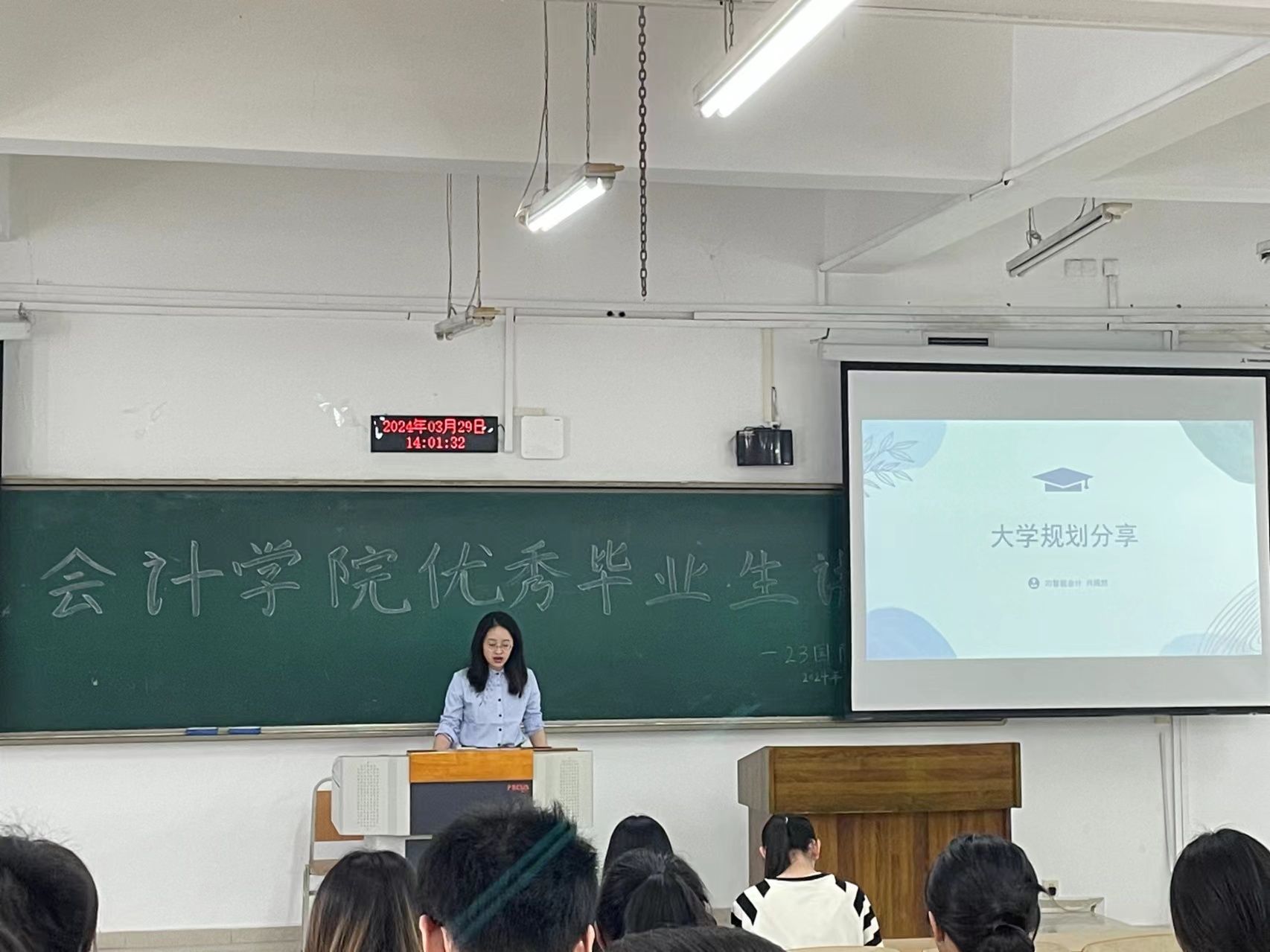 为了更好地帮助同学们树立学业生涯规划意识,提升学习动力,发挥优秀大学生模范带头和激励导向的榜样作用,促进形成自我教育、自我管理、自我成才的良好学习氛围。2024年3月29日,重庆工商大学OK138太阳集团优秀毕业生第一场宣讲会在博智楼顺利举办。此次宣讲会由肖嫣然、陈瑜昕、吕泽僖等2024届优秀毕业生分享,学院2023级国际项目班和2022级会计专业的同学参加了宣讲会。