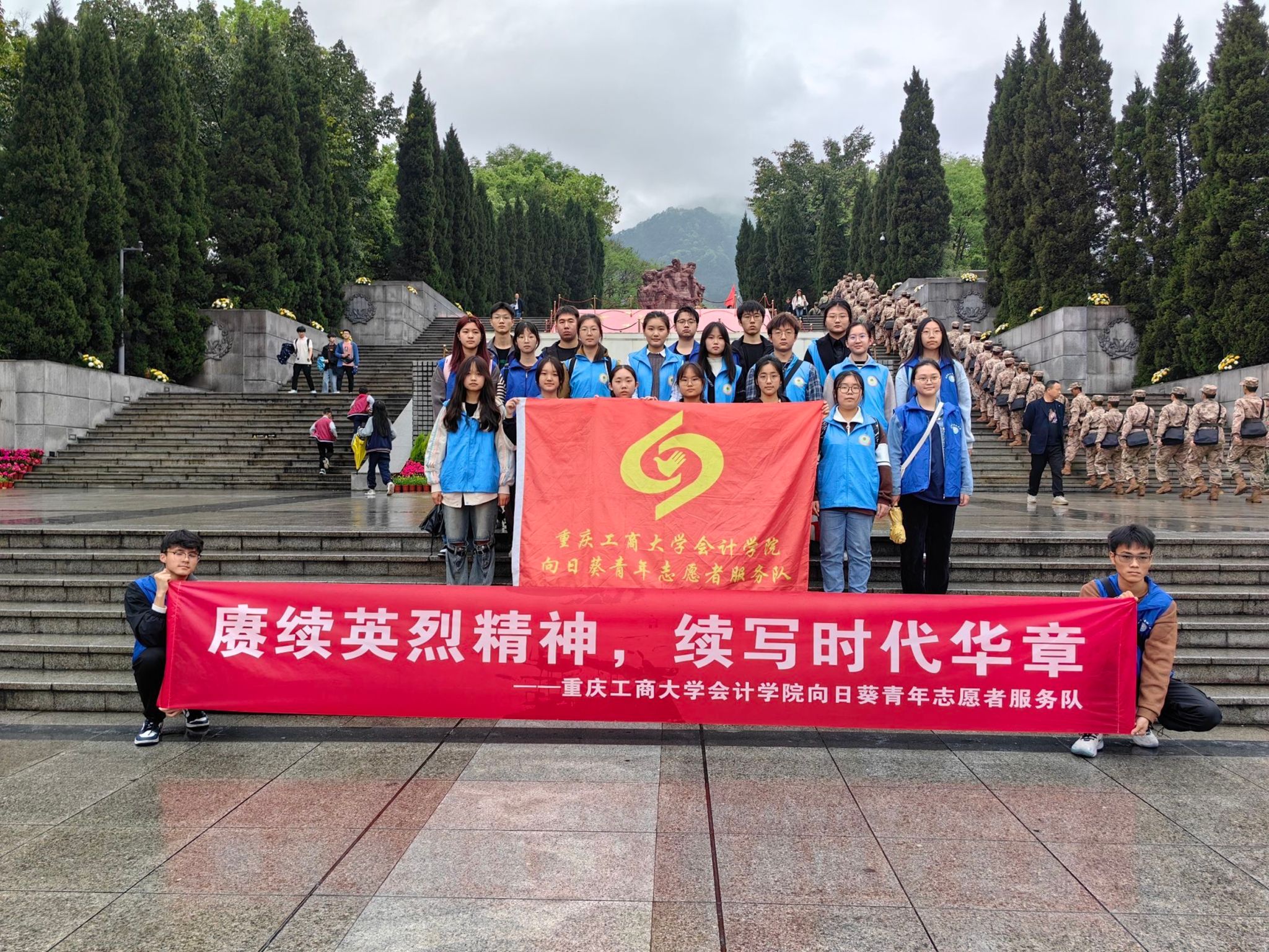 青山埋忠骨,山河念英魂!OK138太阳集团向日葵青年志愿者服务队于2024年4月4日前往沙坪坝区歌乐山烈士陵园,举行以“缅怀先烈祭英魂,酌古御今习毅志”为主题的清明节烈士陵园祭扫活动。