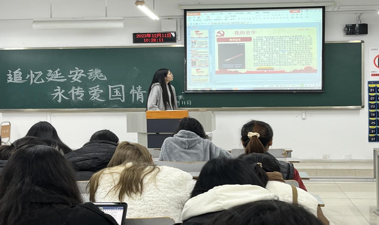 2023年12月11日上午十点,2021级财务管理一班的同学们齐聚7教博智楼310教室,开展了 “追忆延安魂,永传爱国情”系列主题活动。此次活动旨在让同学们更加深入地了解中国共产党的革命历史进程和延安精神,引领班级团员和青年认真学习领悟伟大革命精神,做有理想、敢担当、能吃苦、肯奋斗的新时代青年,以贯彻党的二十大精神为主线,大力弘扬伟大革命精神。