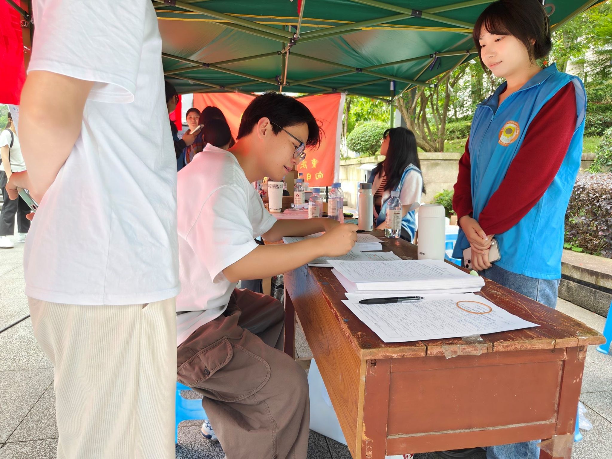 重庆市血液中心的工作人员也来到现场,为师生们提供专业的献血指导和服务。他们耐心解疑答惑,细致进行身体检查,确保每位献血者的安全。