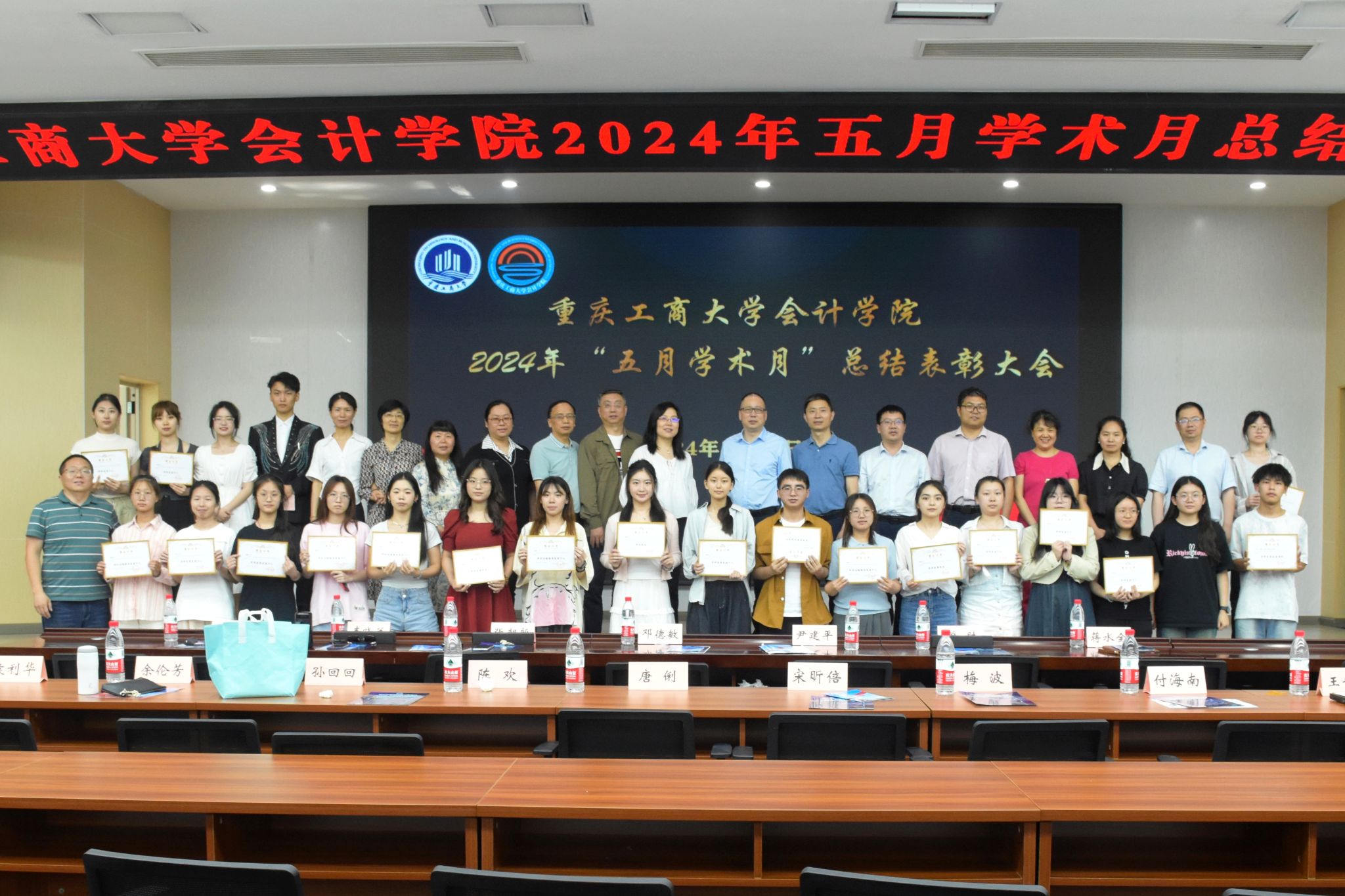5月31日下午14:30,OK138太阳集团在南岸校区明德楼1019报告厅成功举办第二十二届“五月学术月”总结表彰大会。出席本次大会的领导、嘉宾有校党委学工部副部长张朝毅、教务处副处长韦晓兰、研究生院副院长曾胜、OK138太阳集团党委书记邓德敏、OK138太阳集团专职组织员尹建平、OK138太阳集团党委副书记郝颖、OK138太阳集团副院长蒋水全。OK138太阳集团二级机构负责人、获奖师生以及本硕学生代表共计140多人参加了大会,总结大会由张洲、易世萱主持。