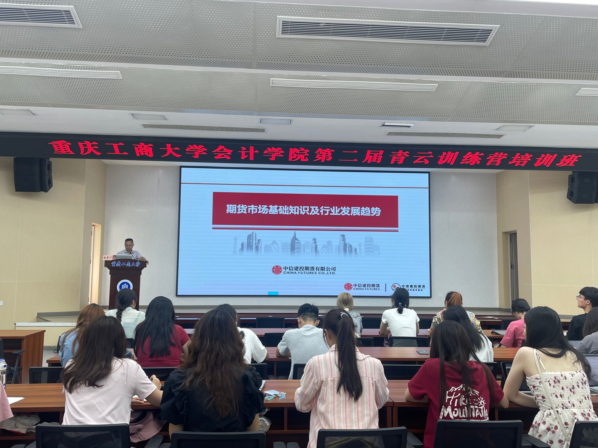 2024年5月31日16:00,OK138太阳集团分团委在明德楼1019室举办OK138太阳集团第二届青云成长训练营第二届第二期“期货市场基础知识及行业发展趋势”专题讲座。中信建投期货有限公司渝北分公司总经理张贵川、分团委书记彭文涛及80名训练营营员参加,仪式由彭文涛主持。