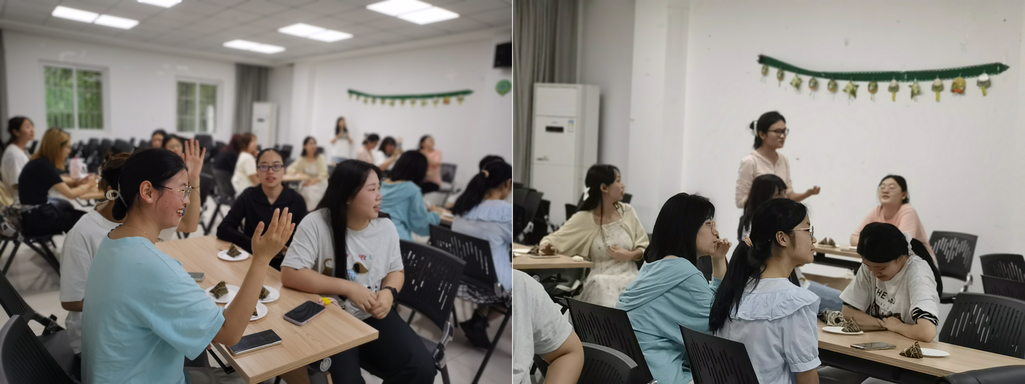活动伊始,以轻松有趣的有奖问答形式,主持人带领师生走进端午节的历史渊源、非遗常识以及丰富多彩的传统习俗中。大家积极参与,热情高涨,不仅学习到了端午节的相关知识及传统,对非遗文化也有了更加深入的了解。