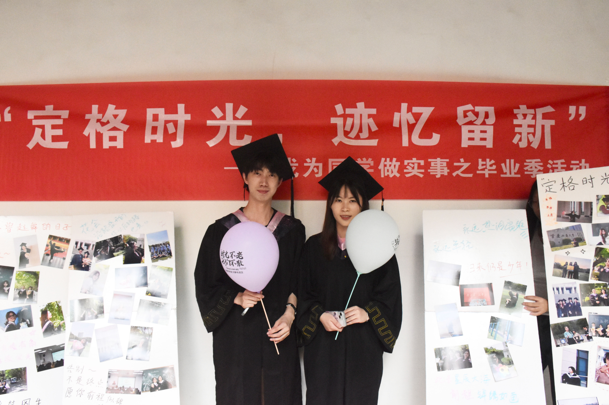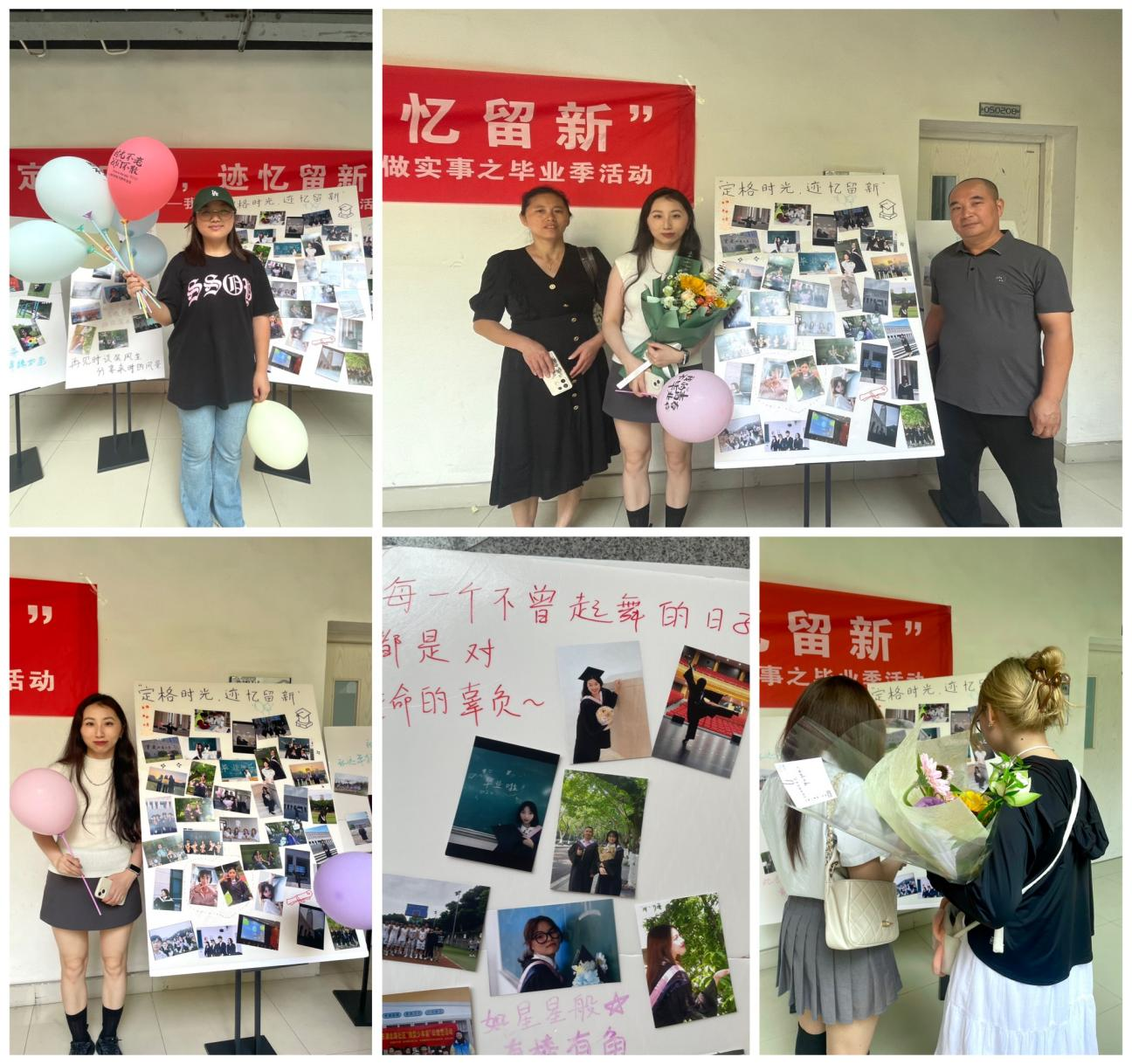 在场的毕业生们纷纷在留言板贴上了自己最爱的照片并留下了专属的签名。其乐融融、和谐融洽的活动氛围,让大家都开心地拍照打卡留恋,这既是一种对即将离开母校的不舍,还是一种对自己一去不返青春的感慨,更是一种对未来美好的憧憬和无限的向往。此次活动共收到来自8个学院的100余名同学投稿的照片,活动的成功举办,不仅营造一种欢乐、感恩、惜别的毕业氛围,更让毕业生们带着温馨和祝福走向新的人生阶段。愿毕业生们都怀揣着理想和抱负,步入社会继续努力深造,永远不停下脚步!