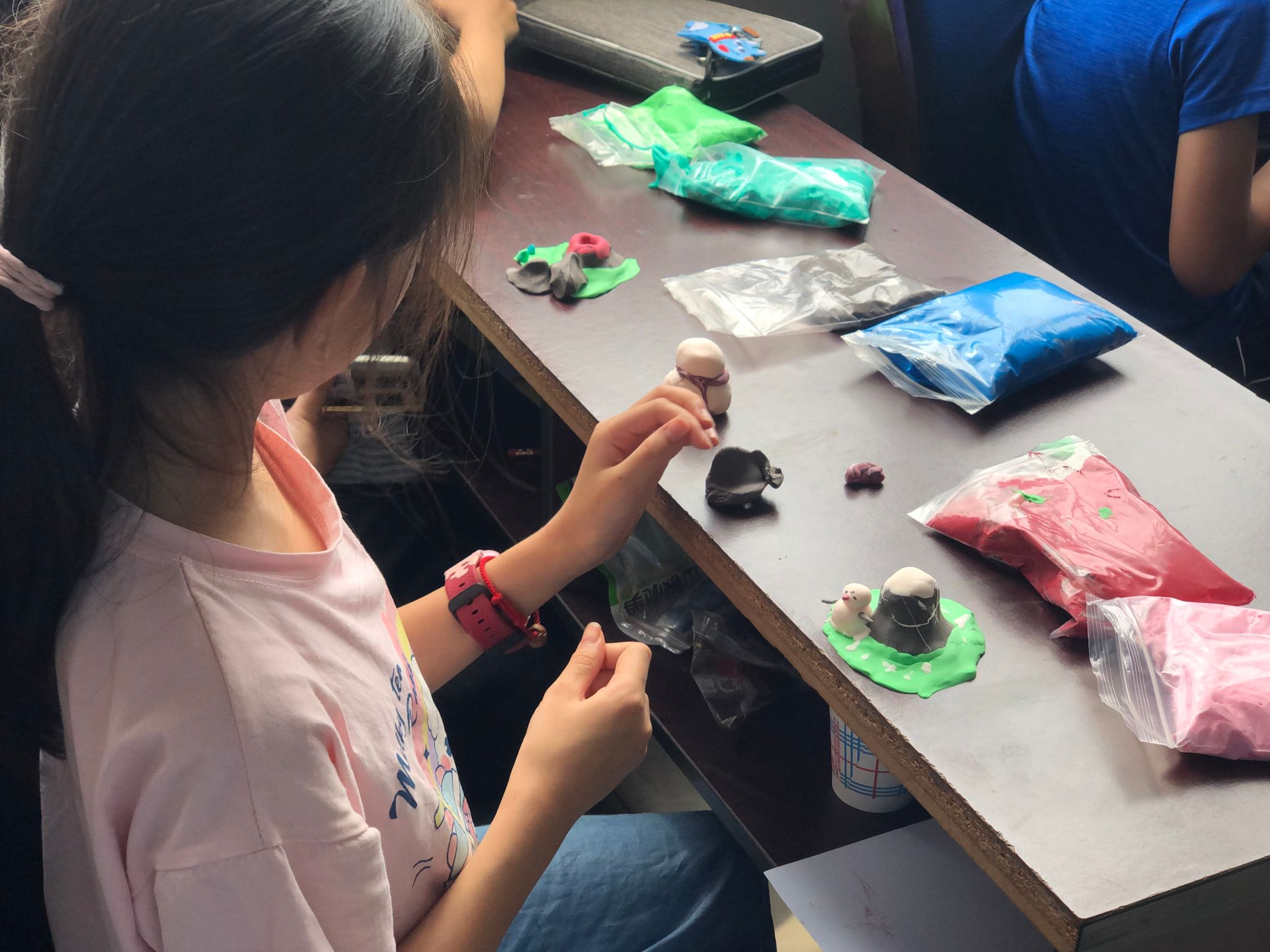 随后,团队成员耐心指导学生如何使用粘土这一质朴而富有表现力的材料,去模仿并创造自己心中的中国美景。让他们在动手的过程中加深对这些美景的印象。小朋友们的眼睛里闪烁着无尽的想象力,每一个成品都是他们心中的一场小小奇迹。志愿者们笑着,夸奖着每一个孩子的努力,让他们感受到了成就和善意的双重滋味。在这个充满温馨和创意的环境里,他们利用粘土步步搭起中国山川河流、古建园林等具有中国特色的自然和文化景观,通过自己创作的过程感受到大自然的奇妙和文化的博大精深。