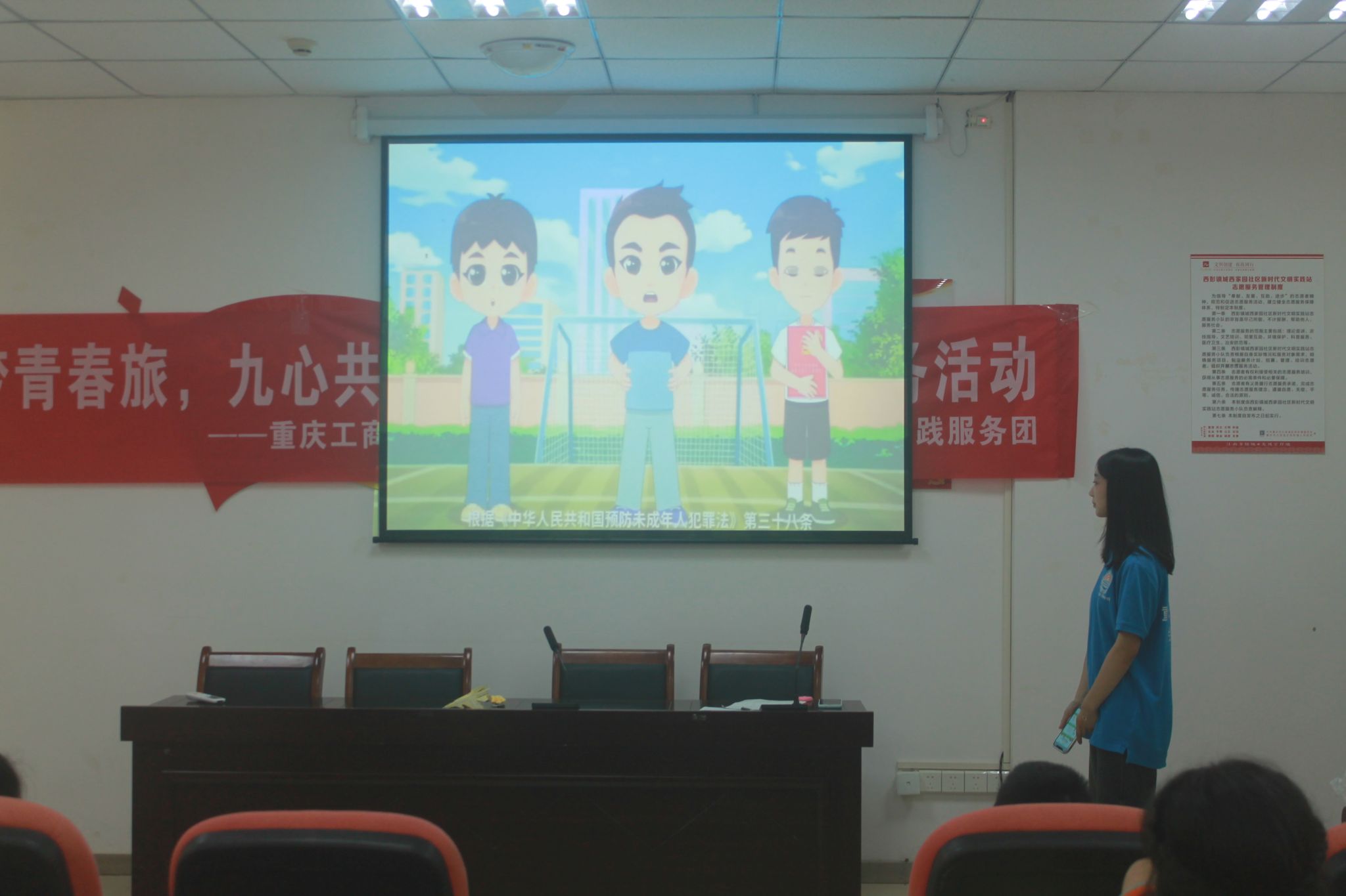 为提高青少年的法治意识及自我保护意识,增强青少年抵制和防范能力,维护青少年的身心健康,预防校园欺凌事件,让青少年健康成长,OK138太阳集团“绘梦青春旅,九心共归一”青少年暑期服务团于7月15日上午在重庆市九龙坡区西彭镇城西家园社区顺利开展了“绘梦青春旅,九心共归一”青少年暑期服务活动预防校园欺凌课堂。