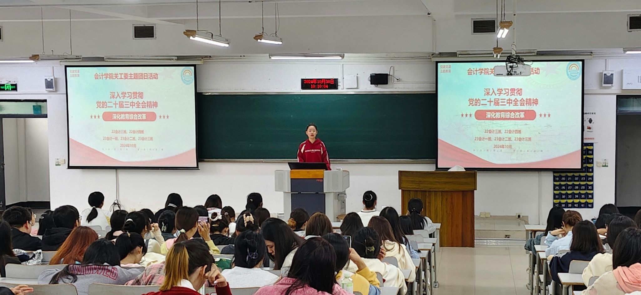 主题活动二:2022级会计三班等多个班级,开展学习贯彻党的二十届三中全会精神主题团日活动,主要围绕教育综合改革开展深入学习。同学们学习了党的二十届三中全会召开的基本情况、深化教育综合改革的重大意义、党的十八大以来教育综合改革的成效,以及深化教育综合改革的重点举措。同时,同学们还了解到学院近年在教育改革方面的举措,对“教育改革”的理解更加具象化。